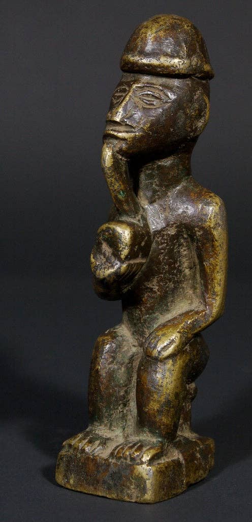 Une sculpture artisanale en bois de fer du désert représentant une divinité communément connue des cultures amérindiennes du sud-ouest des États-Unis sous le nom de Kokopelli. Le Kokopelli symbolise le plus souvent l'abondance, la fertilité et la joie.