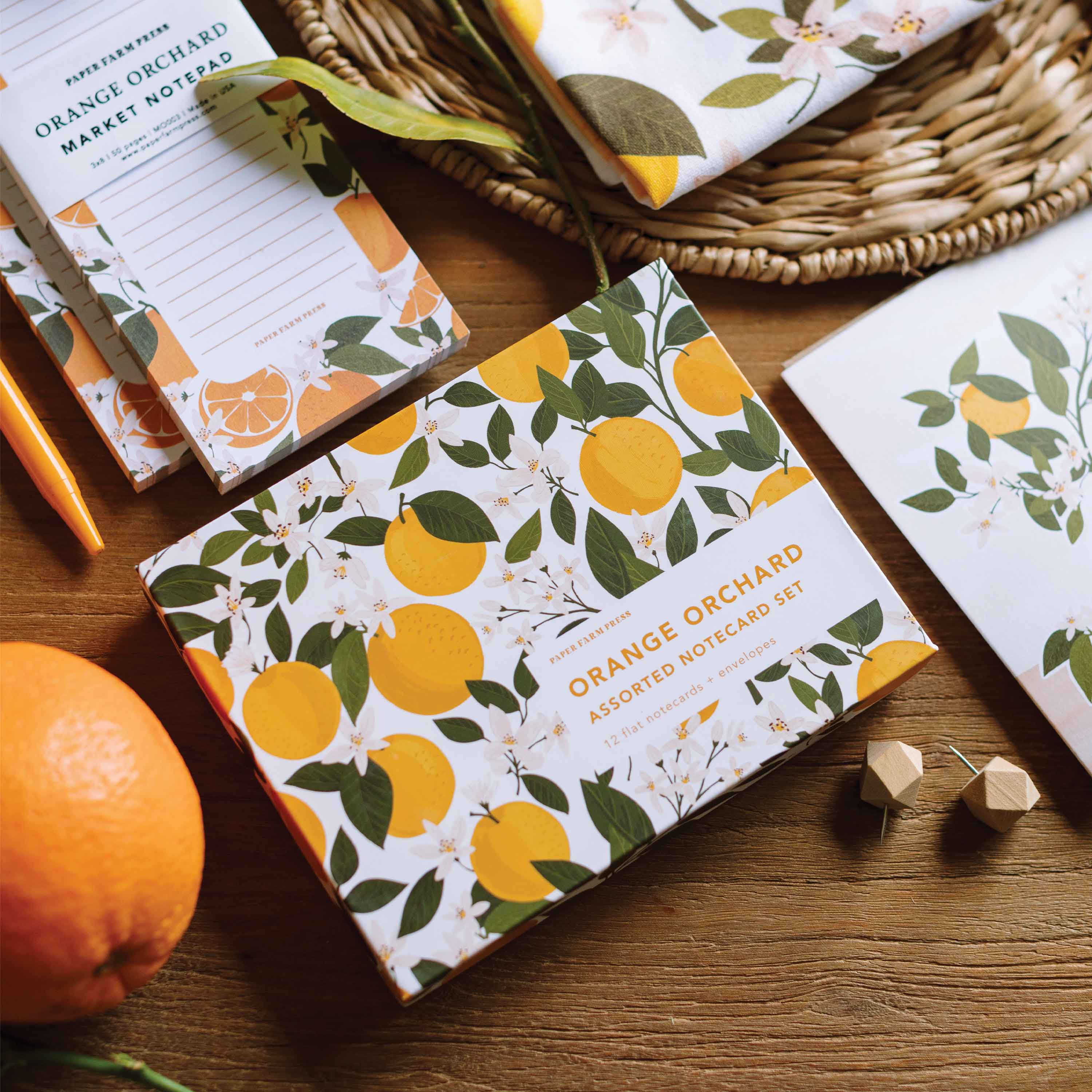 Ensemble de papeterie Oranges, cartes de correspondance agrumes, intérieur vierge en vente B2B