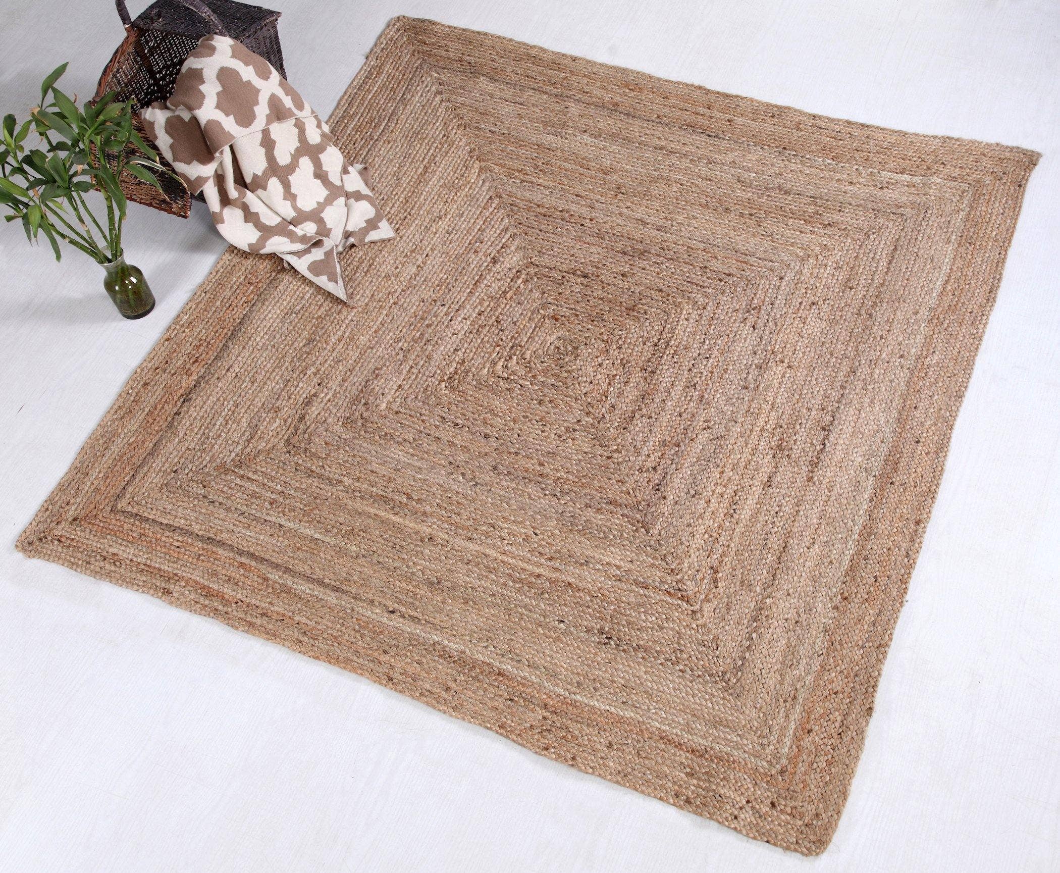 Tapis rustique DHAKA tissé à la main avec poils plats en jute indien en fibres naturelles, taille L, taille M, petit et revêtement de sol neutre en vente B2B