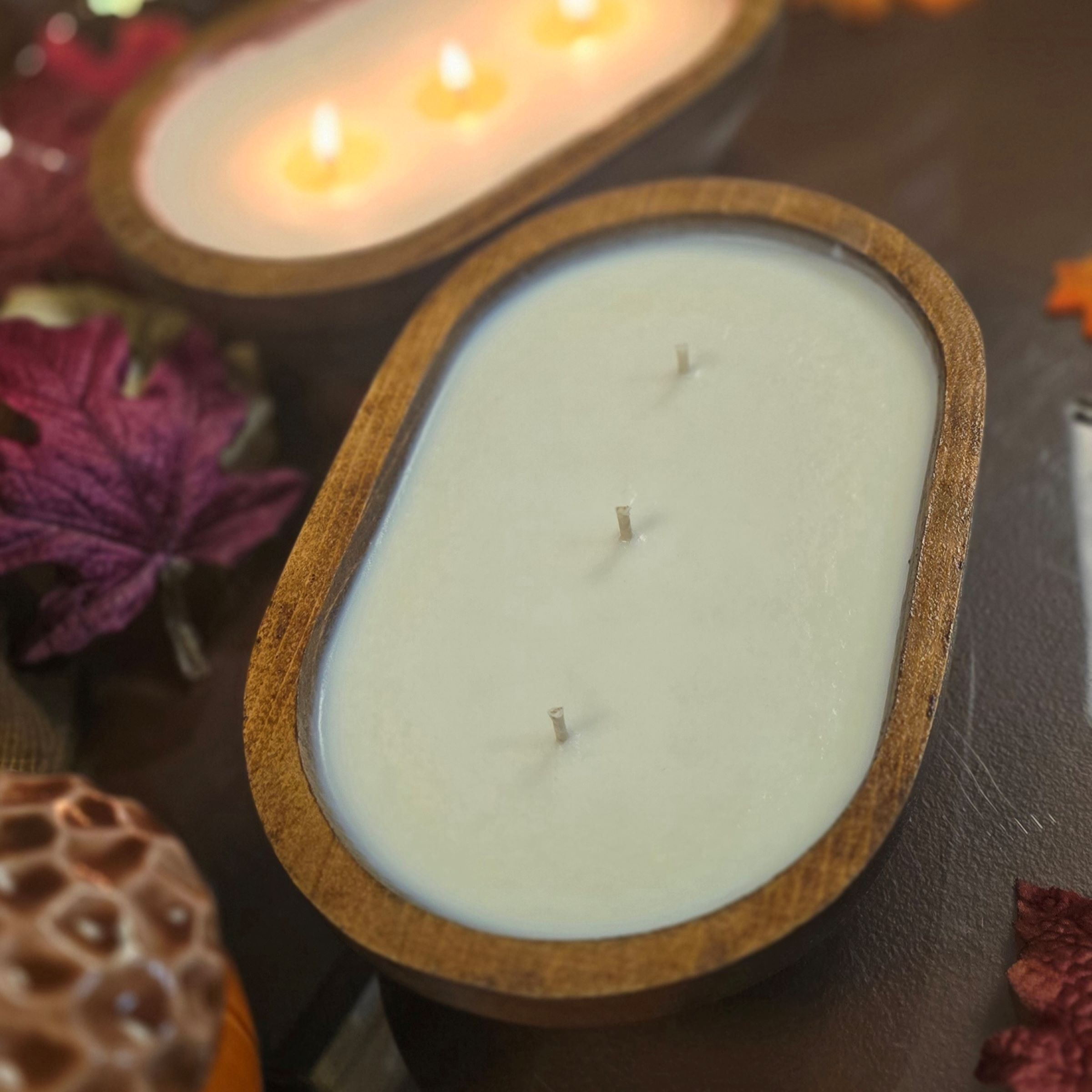 Pays de fabrication : États-Unis Matériau de la mèche : Bois Nombre de mèches : 3 Occasion spéciale : Halloween Occasion : Halloween Produits faits main : Artisanal Saison : Automne Taille : 9”l x 6”l x 2-2,5”h le volume est d'environ 20-24 oz liq. les mesures varient. Type de cire : Je suis
