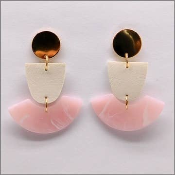 Boucles d'oreilles en bois peint en gris, magnésite et acrylique givré blanc. Chaque boucle d'oreille pèse 0,52 oz et mesure 5,375 pouces.
