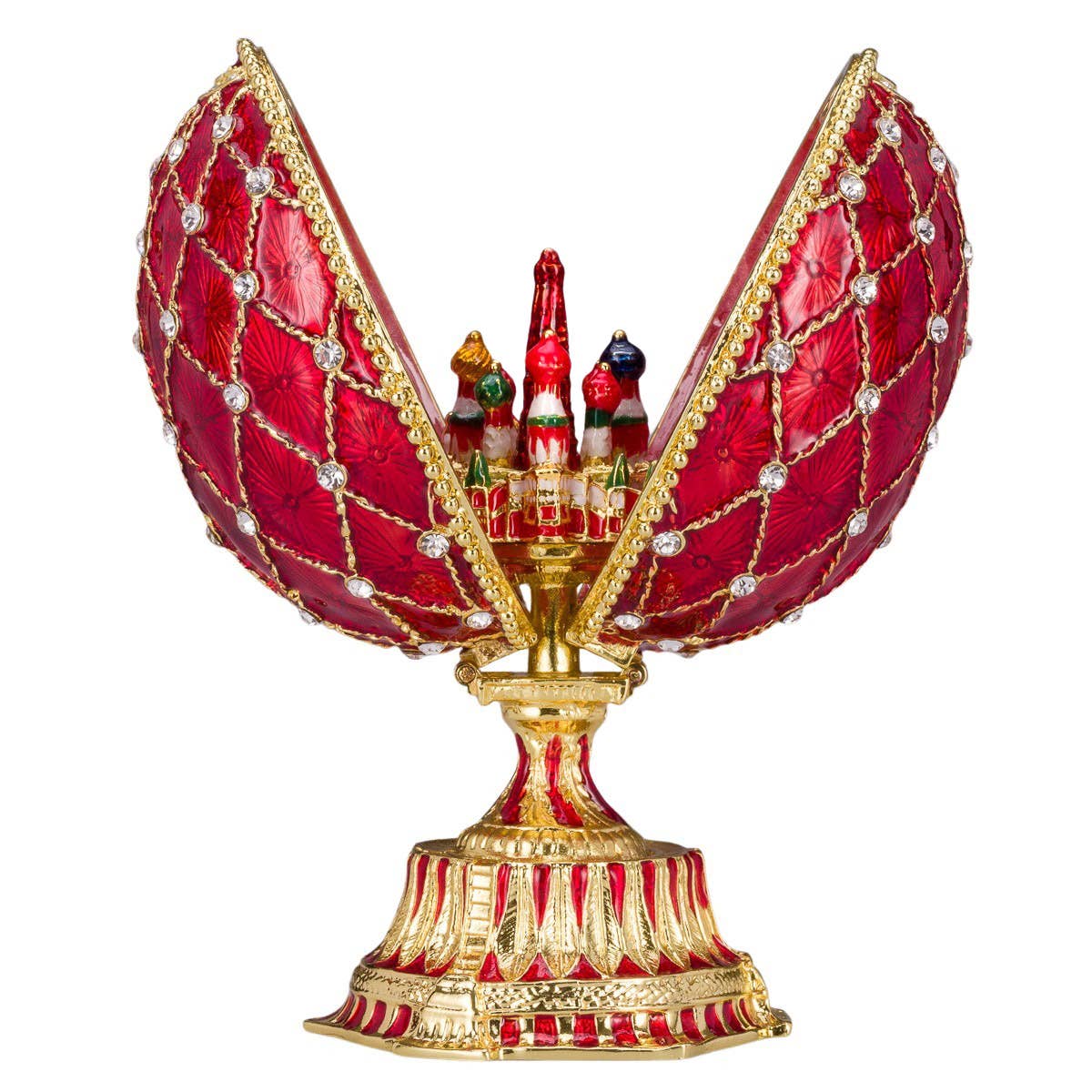 Boîte à musique œuf Fabergé Fleurs de Printemps rouge - boîte à bijoux en vente B2B