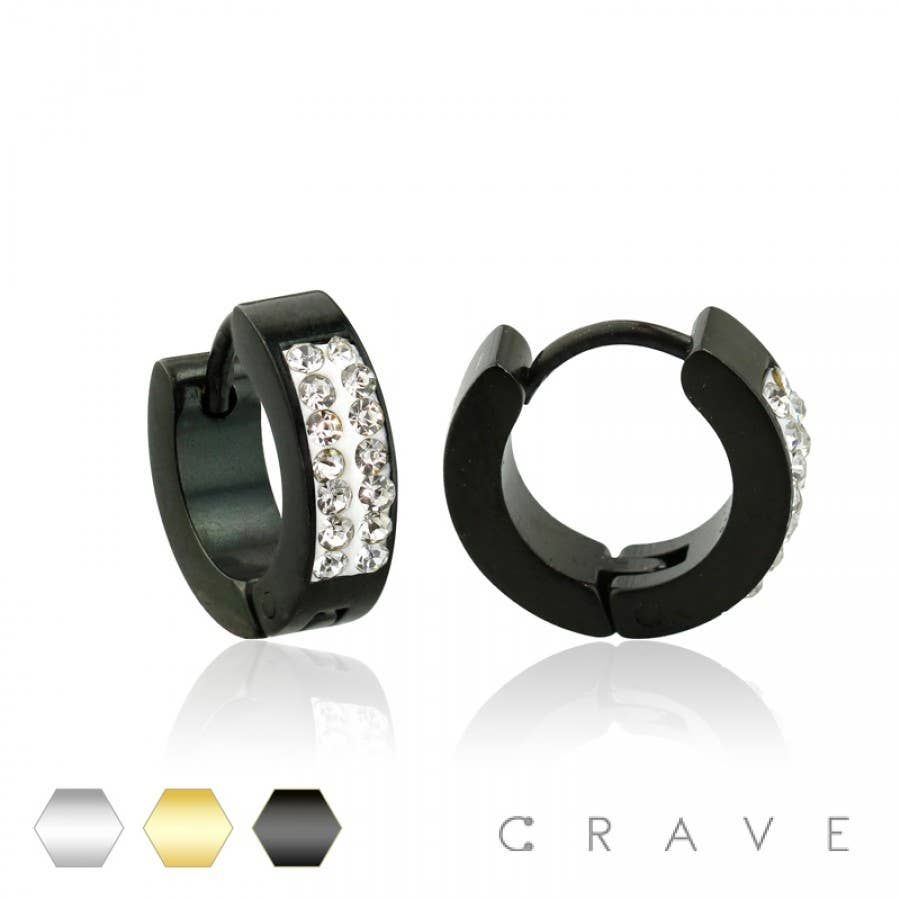 BOUCLES D'OREILLES CHUNKY HUGGIE EN ZIRCONE CUBIQUE PAVÉ NOIR DISCO EN VENTE B2B