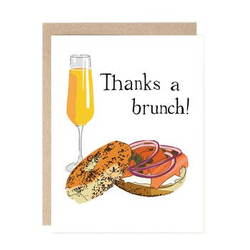 Lapin dessiné à la main avec un bagel avec un texte sur lequel on peut lire « Merci pour tout ». Détails : Taille : 4,25 pouces x 5,5 pouces. Imprimé sur du papier blanc cassé naturel et associé à une enveloppe blanc cassé assortie. Intérieur vierge pour un message personnel.