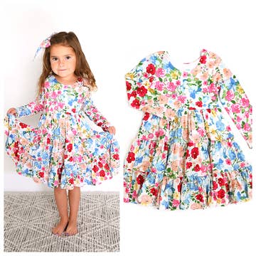 Robes à perles florales bleues et roses pour bébés filles en vente B2B