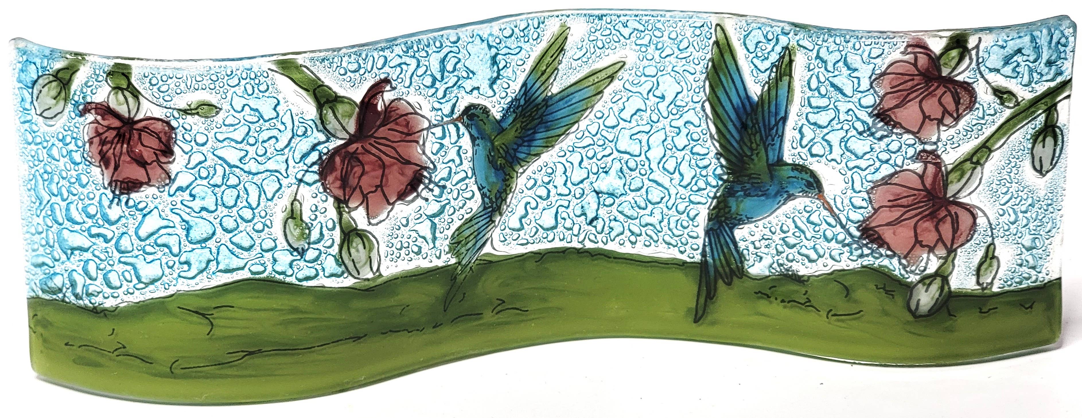 Cuivre, laiton et acier fusionnés entre les couches de verre avec grenouille épingle. 7" x 7"