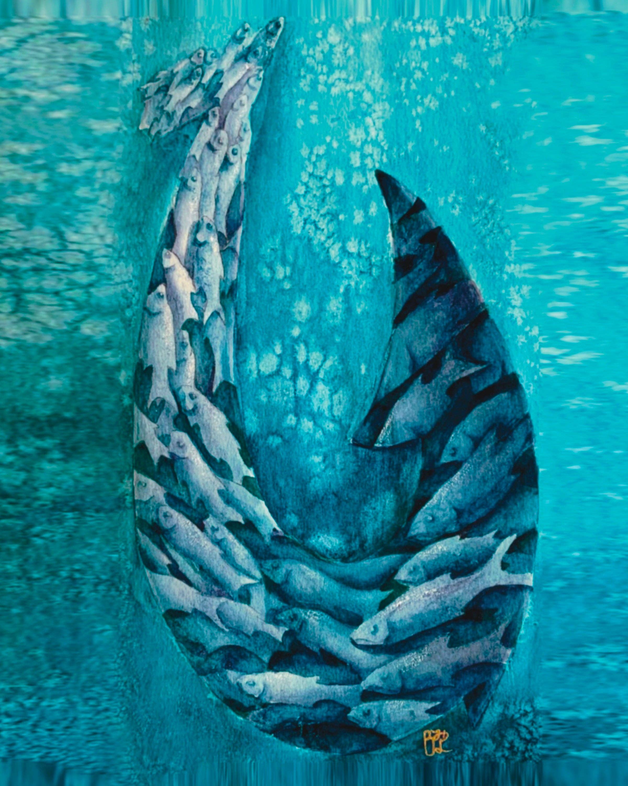 Impression d'art sur la baleine, le requin, le requin, l'aquarelle en vente B2B