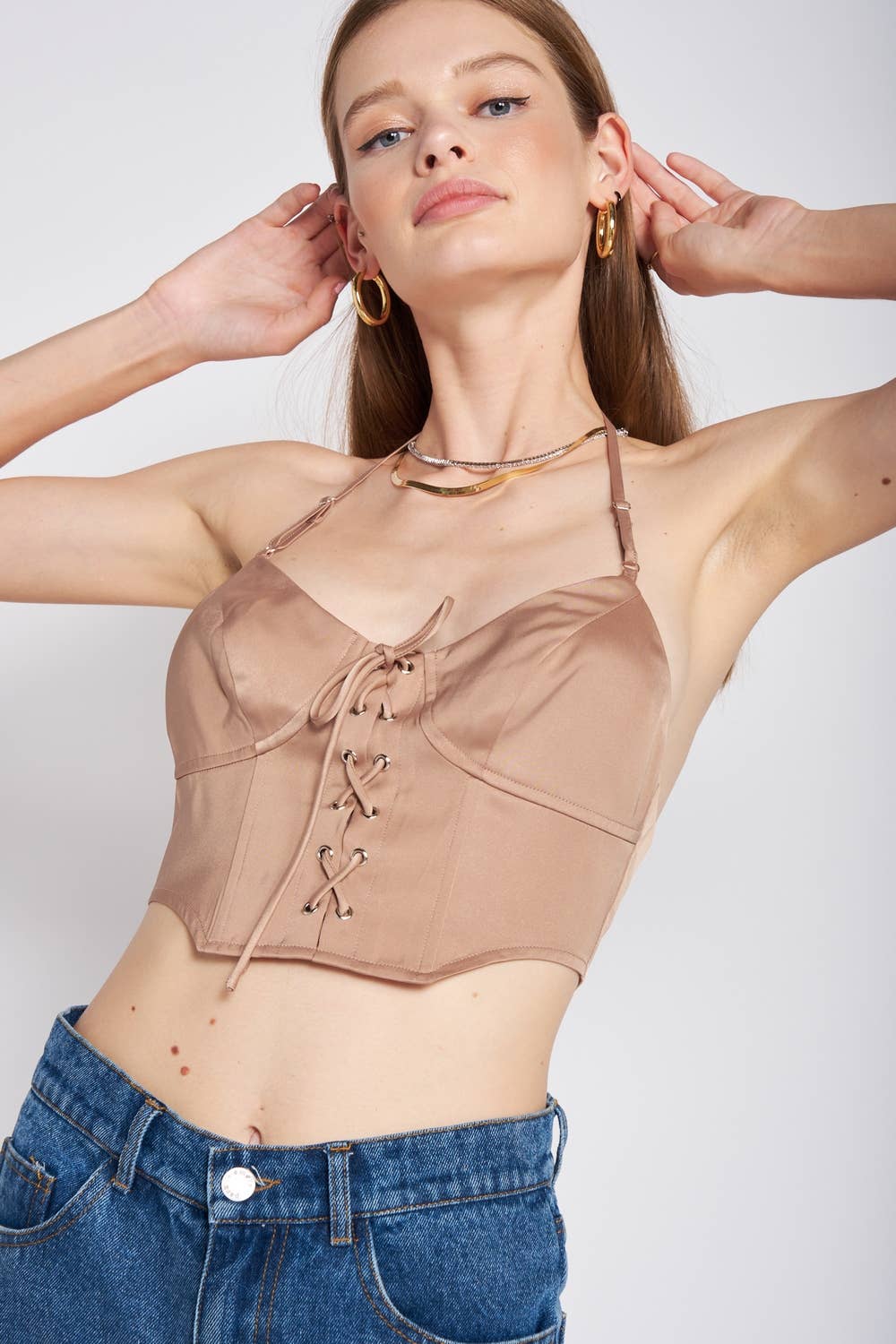KIWI Top bustier métallisé Coupe courte Buste en forme de cœur Bretelles de soutien-gorge ajustables et amovibles Gobelet taille B Disponible en 3 tailles, avec quatre colonnes réglables par taille Faux cuir métallisé Porté avec un short arc-en-ciel IP2920 Le mannequin mesure 5 pieds 6 pouces et porte une taille S. Poitrine : 34 po Tour de taille : 24 po Hanches : 34 po Identifiant du produit : IC2824