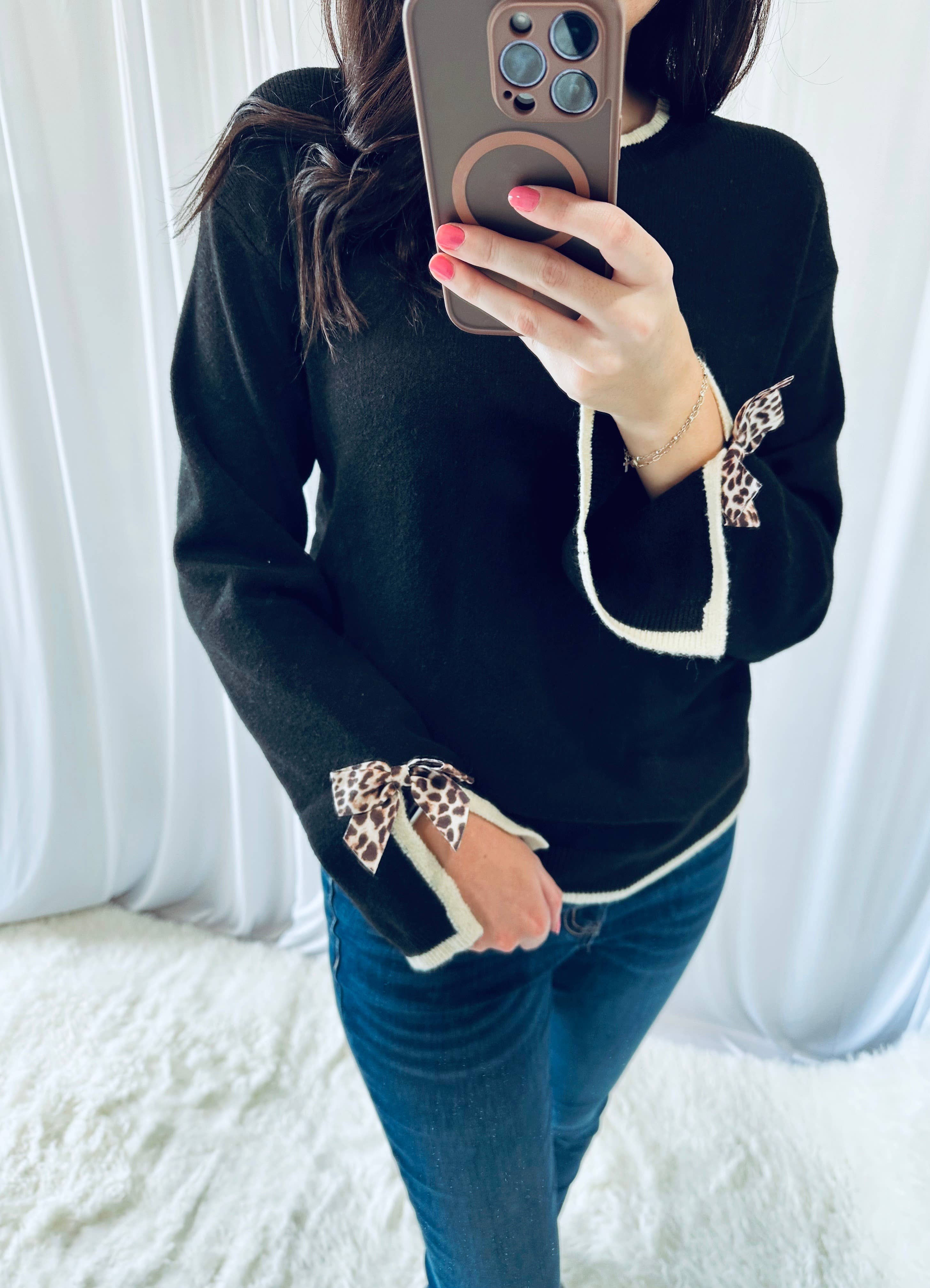 Pull à col en V avec manches patchwork à imprimé léopard et blocs de couleur en vente B2B