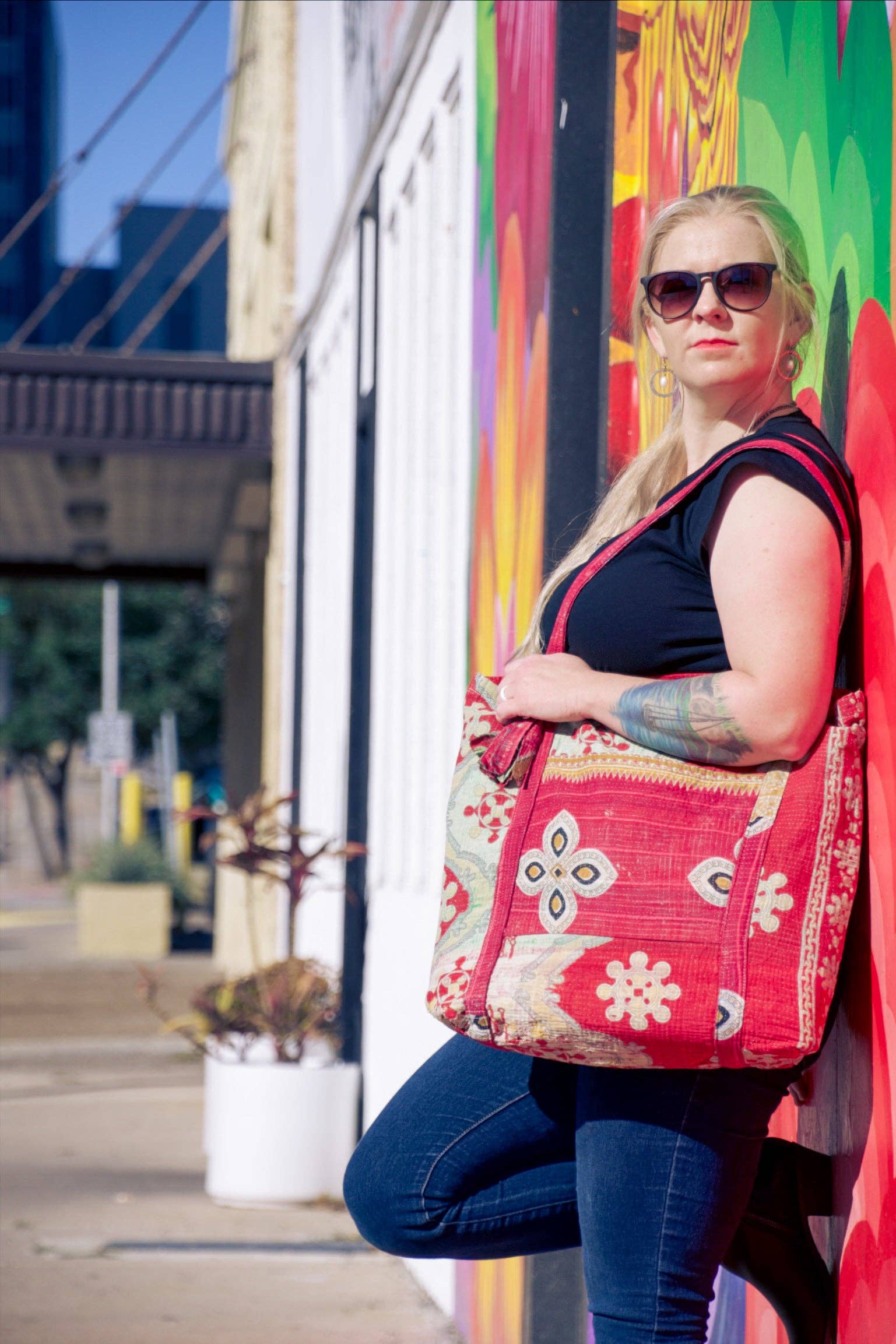 Nos sacs hobo Kantha sont confectionnés à la main par des artisanes en Inde à partir de saris 100 % coton recyclés. Ces sacs robustes sont réalisés en assemblant plusieurs saris, minutieusement cousus avec la technique traditionnelle de broderie « kantha ». Ils sont dotés d'une fermeture éclair et de pompons faits main. Nous proposons une belle collection d'écharpes et d'accessoires kantha, chaque pièce étant unique et véritable œuvre d'art. Disponible en imprimés et couleurs variés. Dimensions : 33 cm x 58 cm.