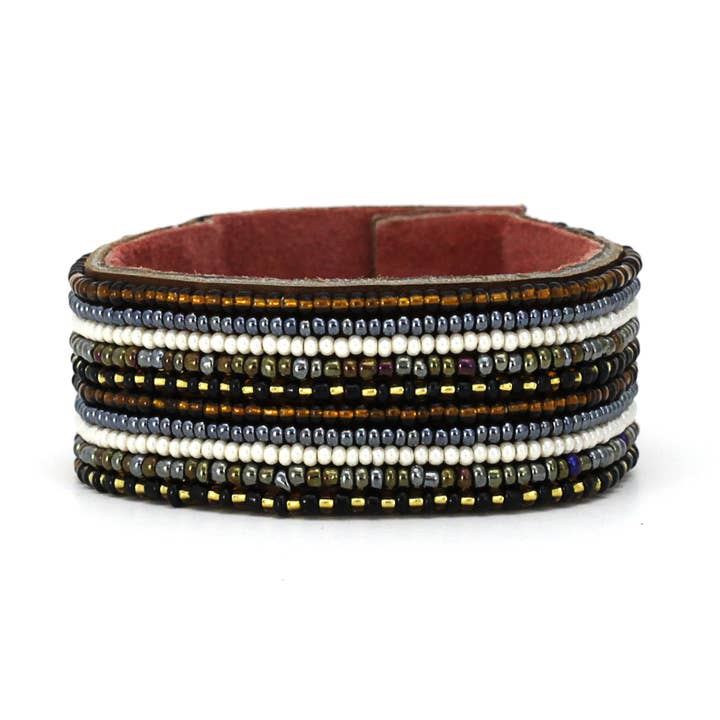 - 100 % fait main par des artisans assez rémunérés dans notre coopérative de travail partenaire en Tanzanie ! - Fabriqué en cuir naturel libre et doublé de daim doux. - Durable et réglable. - Fixé par une fermeture à bouton bouton à trois longueurs réglables. - Réglable entre 7 po et 8 po de longueur - Trois largeurs disponibles dans tous les styles : petite (0,5 pouce), moyenne (1 pouce), grande (1,5 pouces). - Les articles sont tous faits à la main, il y a donc une certaine variation dans la texture/couleur du cuir. Chaque manchette est livrée avec une fiche d'histoire contenant des photos et des informations artisanales. Un porte-manchette en bois gratuit est inclus avec les commandes de 6 collections de manchettes ou 400$ de manchettes !