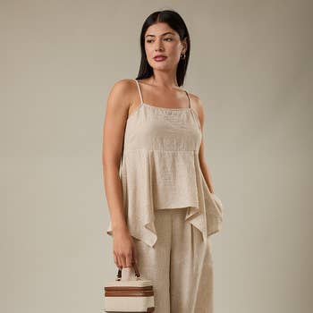 - TISSU TISSÉ MÉLANGE LIN - LAVAGE MINÉRAL - TAILLE ÉLASTIQUE AVEC CORDON DE SERRAGE - POCHES LATÉRALES ABAISSÉES - DÉTAIL PLISSÉ SUR LE CÔTÉ - COUPE AMPLE - PANTALON À JAMBES LARGES PORTÉ AVEC : M20762 (DÉBARDEUR RAYÉ) LE MODÈLE MESURE 5'8" ET PORTE UNE TAILLE PETITE 85% RAYONNE 15% LIN