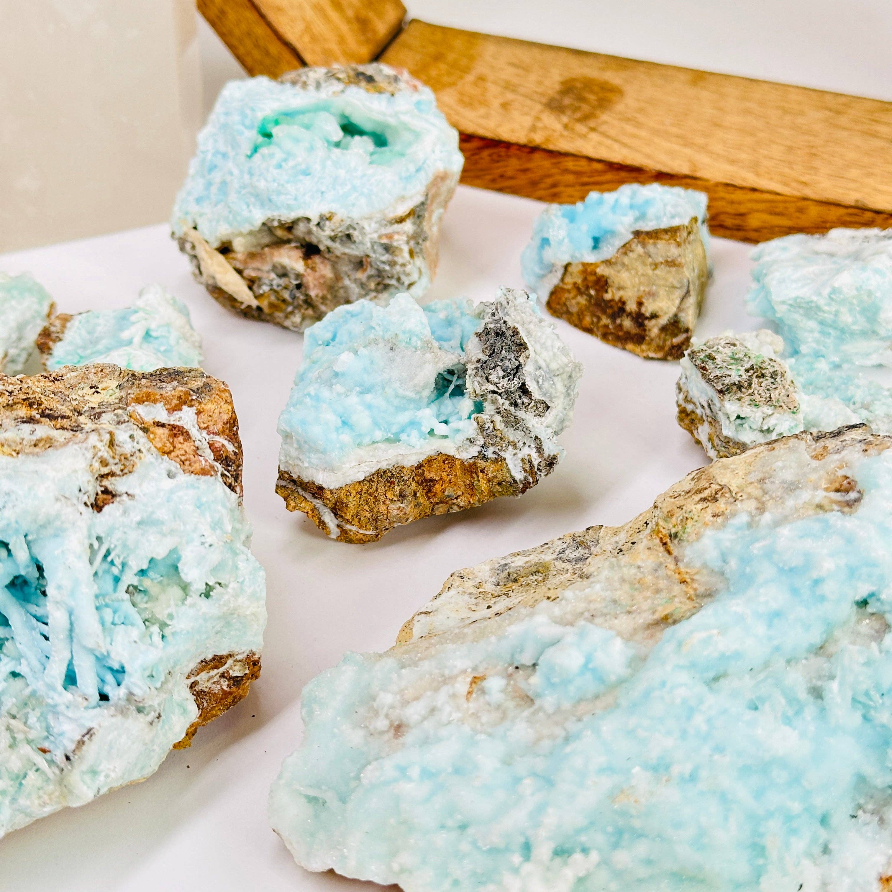 Lot en gros de spécimens d'aragonite bleue naturelle de 2 livres. Environ 6 à 9 PC, l'état est neuf. L'aragonite bleue se trouve en Chine. Prise en charge locale gratuite à Brooklyn, New York. Pierres, cristaux, cristaux en vrac, vente en gros de cristaux, objets spirituels, objets spirituels, méditation, vente en gros de métaphysique.