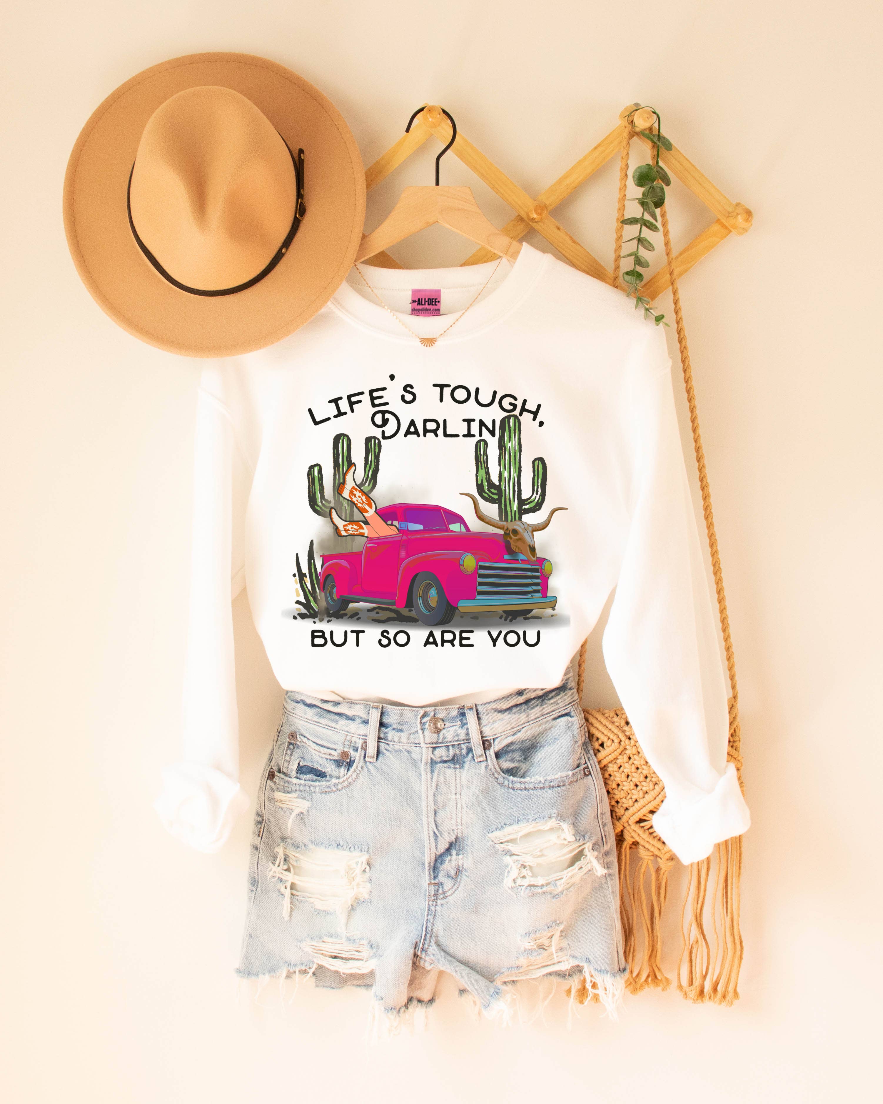 Le t-shirt graphique Western Get Off Your High Horse d'Ali Dee arbore un body unisexe en blanc orné d'œuvres d'art sérigraphiées rose vif. Open Pack Choisissez vos tailles Minimum de 8 unités Conçu et imprimé à notre siège social dans la petite ville de Tolar, au Texas, qui compte 500 habitants. T-shirt graphique western, t-shirt graphique country, t-shirt graphique western, t-shirt graphique rodéo, t-shirts graphiques