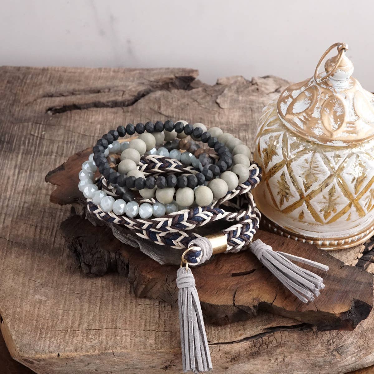 Nos bracelets One Little Bead sont faits avec des pierres précieuses et « One Little Bead » en argile haïtienne. Une petite perle qui crée des emplois, elle représente l'espoir et l'avenir. Achat avec but.