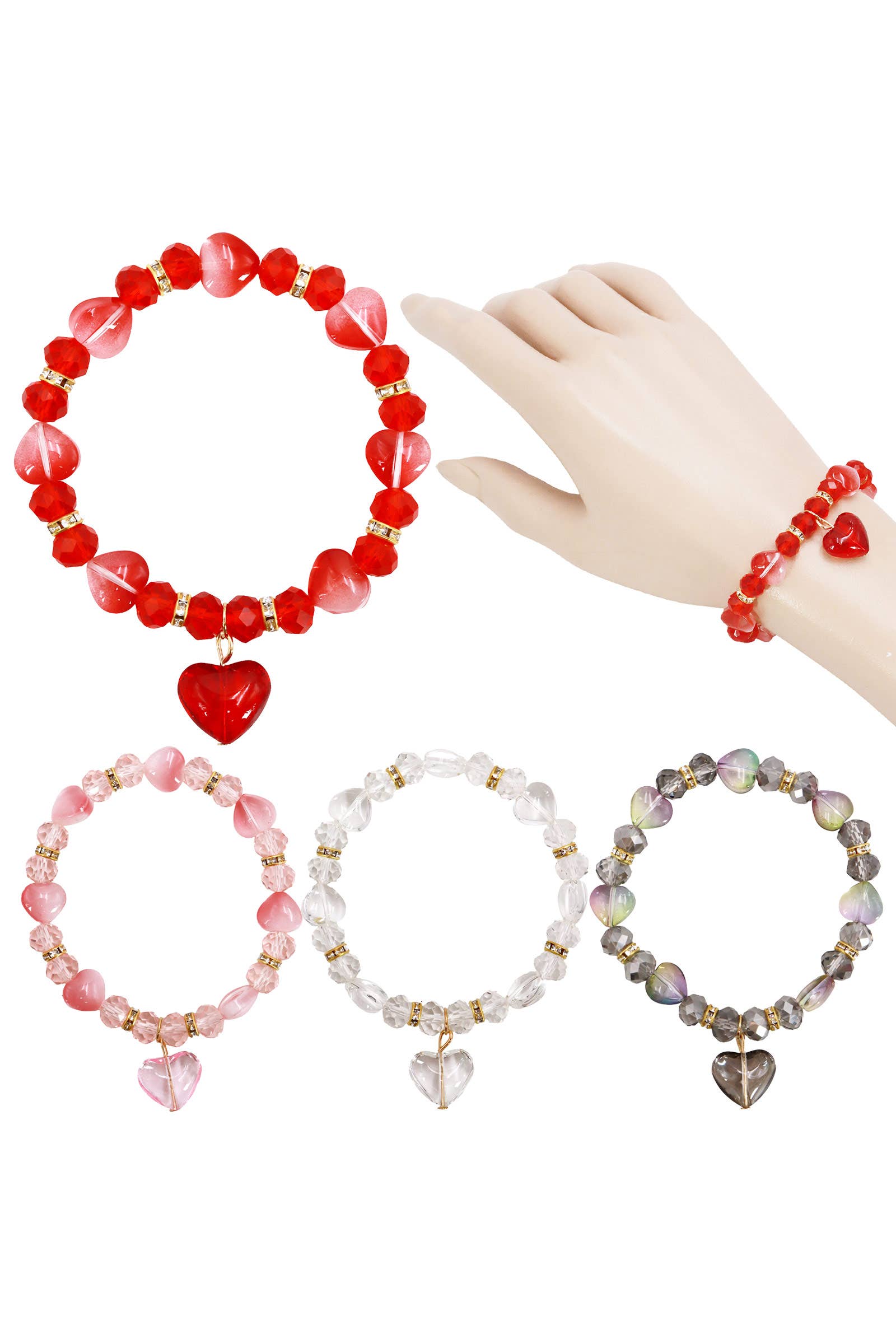 Bracelet extensible "Mama" en perles trempées dans l'or avec cubes de lettres dorés et accents de cœur – Fête des Mères en vente B2B
