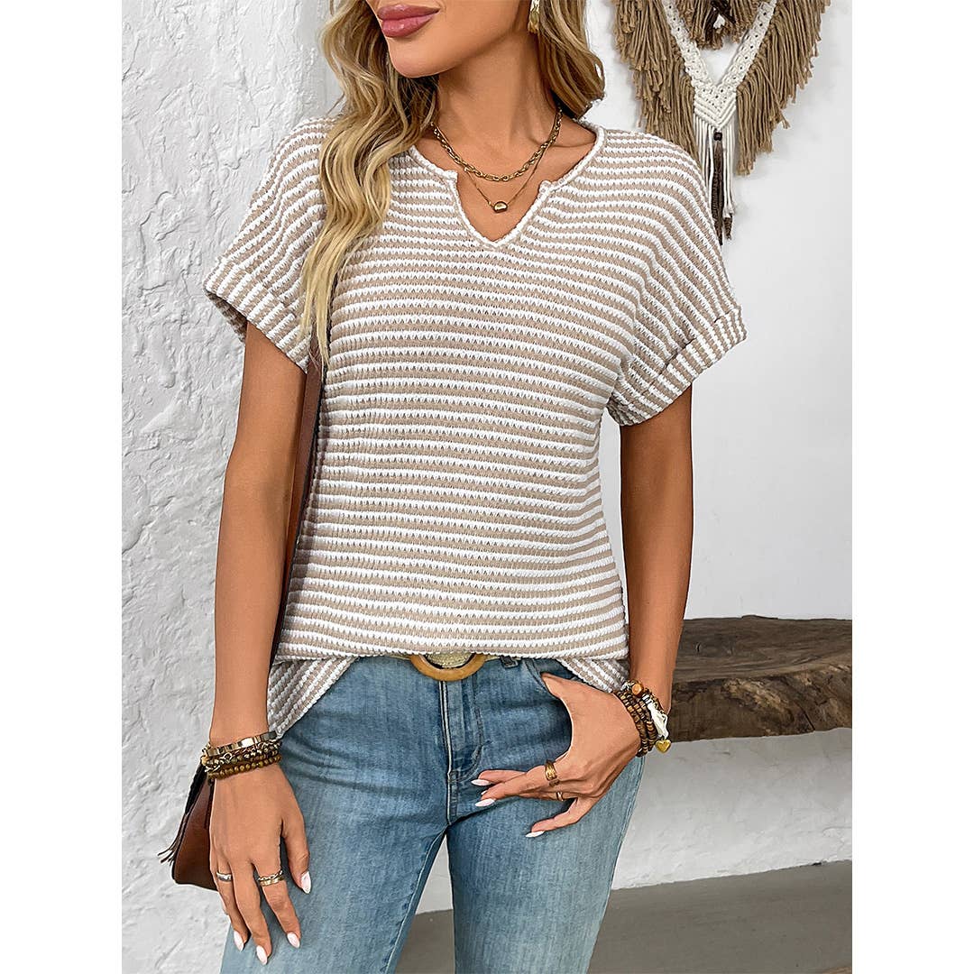* MATIÈRE : Confectionnée dans un tissu doux et respirant pour un confort optimal. Composée de 65 % rayonne, 30 % polyester et 5 % spandex, cette blouse à manches courtes est légère, extensible et agréable pour la peau afin d'assurer un ajustement confortable. * CARACTÉRISTIQUES : Avec une coupe décontractée et un design élégant à manches chauve-souris, ce t-shirt allie confort et style. Il présente des manches courtes, un motif texturé, une couleur unie, des manches chauve-souris et un col rond. Ce t-shirt été 2025 est parfait pour les occasions casual comme formelles. * DESIGN UNIQUE : Ce t-shirt d'été offre un col rond, des manches chauve-souris ou courtes, un ourlet arrondi et une longueur tunique pour une coupe relaxée et décontractée. Il se porte aisément avec un jean, un short ou une jupe. * Les étiquettes de la marque ne sont pas incluses par défaut. Si besoin, vous pouvez les ajouter via ce lien (0,30 $/pièce) : https://www.faire.com/product/p_kzks8vegvk
