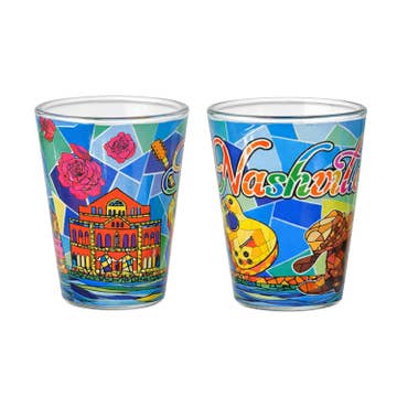 Drapeau national recouvert d'un magnifique motif d'État. Verre à liqueur multicolore de 2 oz.