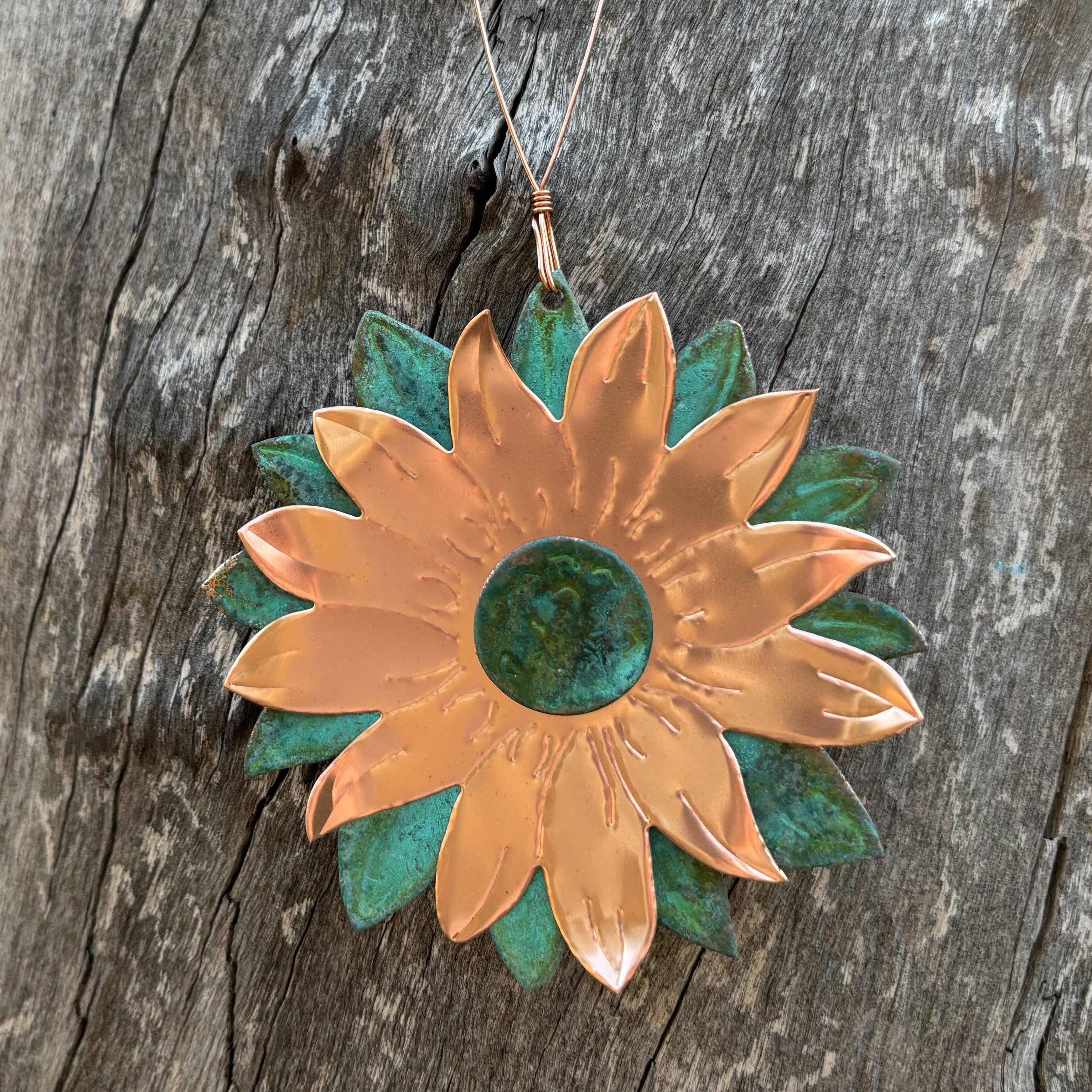 Ornement de fleur. 2,5 l x 3,5 H Cet ornement est fabriqué avec de l'acier de calibre 18. La couleur du processus de rouille naturelle peut varier légèrement, Made In Prescott Arizona