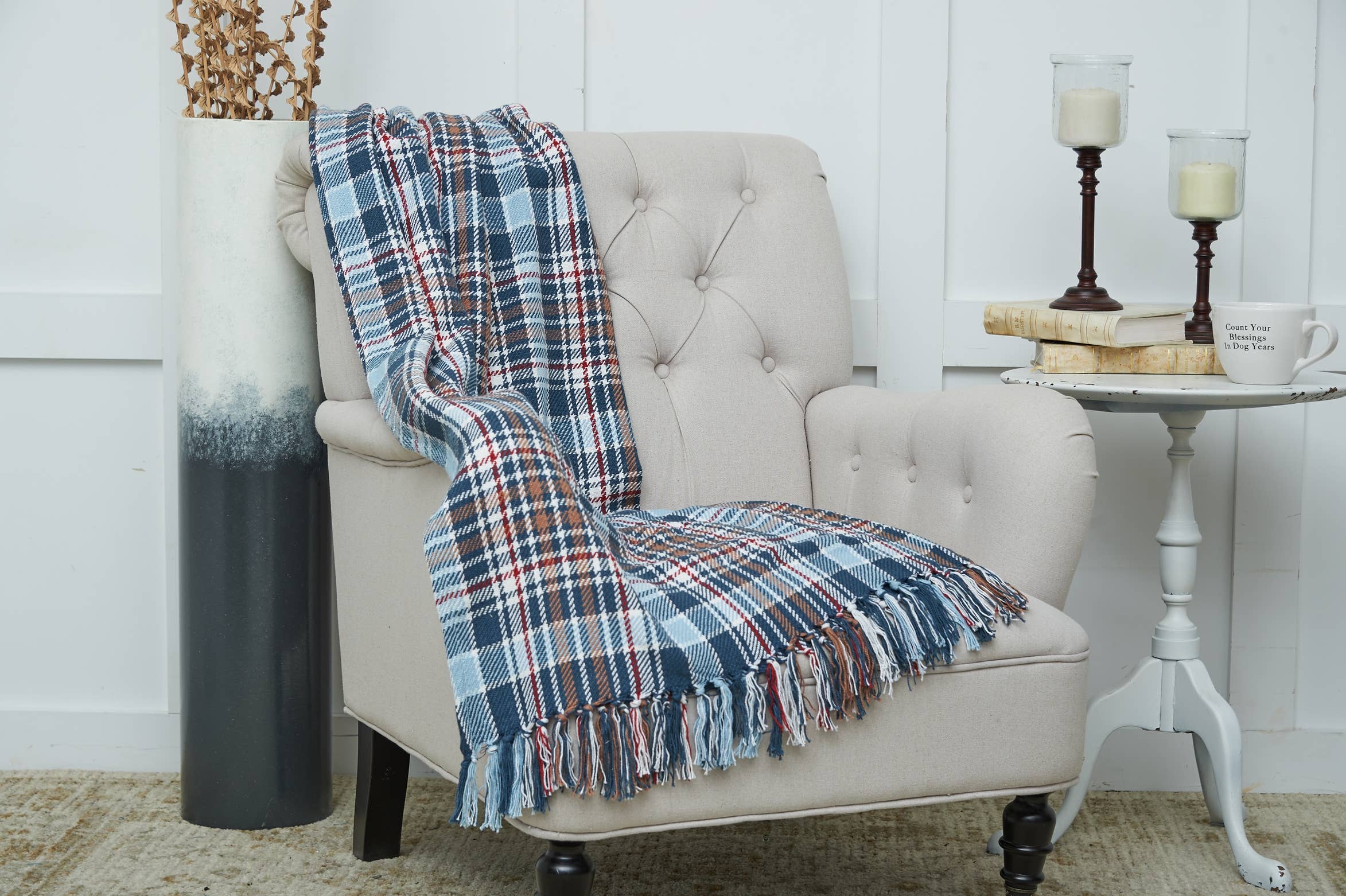 Throw - Blue Window Check with Knots (PC) en vente B2B