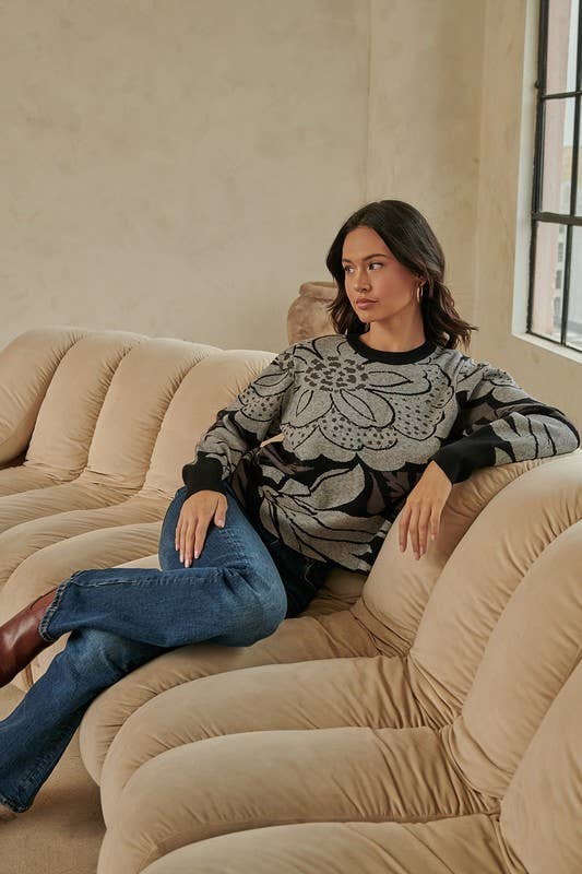 Pull fleuri à manches longues Nathalia