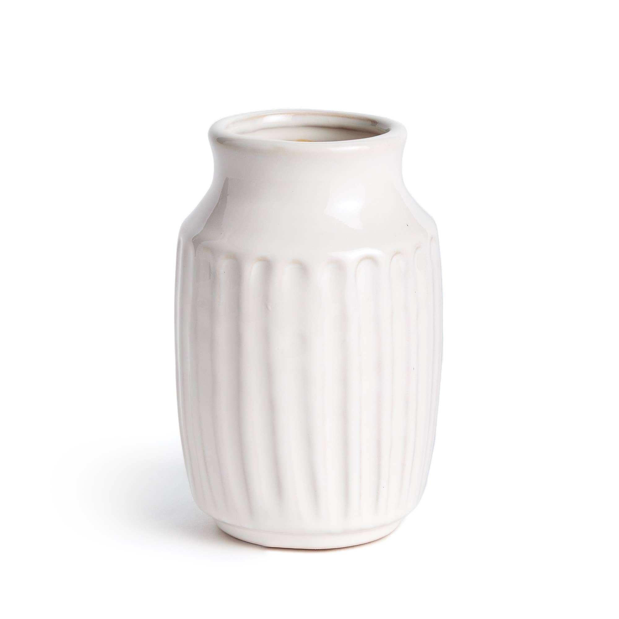 Laissez notre vase en forme de bouteille de lait en céramique embellir votre maison avec une touche de ferme. D'un design simple et intemporel, le vase en forme de bouteille de lait ajoute une touche vintage à n'importe quelle pièce. Exposez des souvenirs floraux séchés, des arrangements saisonniers, ou laissez le vase se suffire à lui-même, les possibilités de décoration sont d'une beauté inépuisable. Le vase en forme de bouteille de lait est idéal pour les rebords de fenêtre, les manteaux de cheminée, les tables dressées, et même comme élément central charmant pour un mariage chic dans une grange. Le vase est coulé à la main puis émaillé dans notre émail blanc crémeux "Vanille". Les dimensions de la bouteille sont de 6 pouces de hauteur, 1,5 pouces de diamètre en haut et 3 pouces de diamètre en bas. Fabriqué à la main dans l'ouest de l'État de New York.