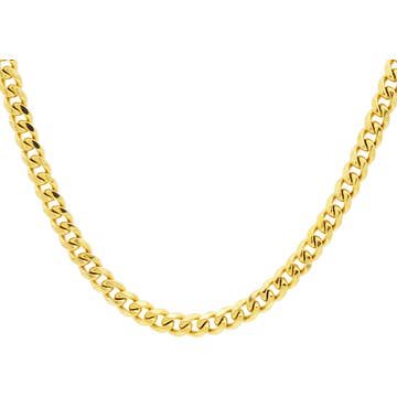 Cette gourmette cubaine Miami en argent sterling plaqué or présente une largeur de 7,7 mm, offrant un look audacieux et élégant. Son design durable et de haute qualité associe l'attrait classique de l'argent sterling à un luxueux placage doré, ce qui en fait un accessoire parfait pour les occasions décontractées et formelles. Matériau : argent sterling Finition : or vermeil 14 carats de haute qualité