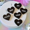 Ces boucles d'oreilles Choose your own F*cking Adventure sont parfaites lorsque vous souhaitez choisir vos messages pour la journée ou en fonction de votre humeur. Peut-être qu'un jour tu te sens « f*ck this » et que le lendemain, tu te sens encore plus « f*ck it ». Vous pouvez désormais tout avoir avec ces boucles d'oreilles à assortir. Fabriqués en acrylique découpé au laser, ils sont livrés avec deux cerceaux en acier inoxydable de 25 mm sur lesquels vous pouvez facilement faire glisser les breloques pour personnaliser vos humeurs, vos mots du jour ou du moment. Chaque set comprend un « f*ck » et un : « off », « moi », « you », « this » et « it ». Le mot « f*ck » n'est pas censuré sur les boucles d'oreilles. Matériaux : acrylique, acier inoxydable Dimensions : 1,5 pouces de longueur, 2,5 cm de largeur