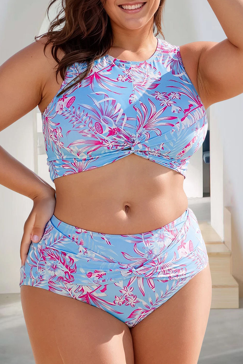 Ensemble de 3 hauts bandeau avec longue ficelle enveloppante, coussinet amovible, bas en forme d'échancrure, jupe à nouer Imprimé tourbillonnant rétro de style années 70