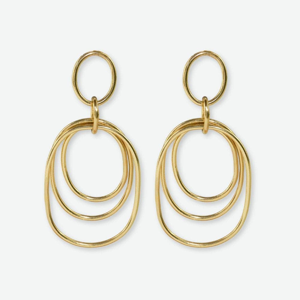 Deux anneaux larges entrelacés martelés en laiton et argent. Juste la bonne taille pour s'adapter parfaitement à votre lobe d'oreille. Un style Marjorie Baer, un best-seller de longue date. Dimensions : 0,8 de large x 1 pouce de long. Options de support : Poteau ou Clip Couleurs de métal disponibles : argent et laiton N° de style E9677DP