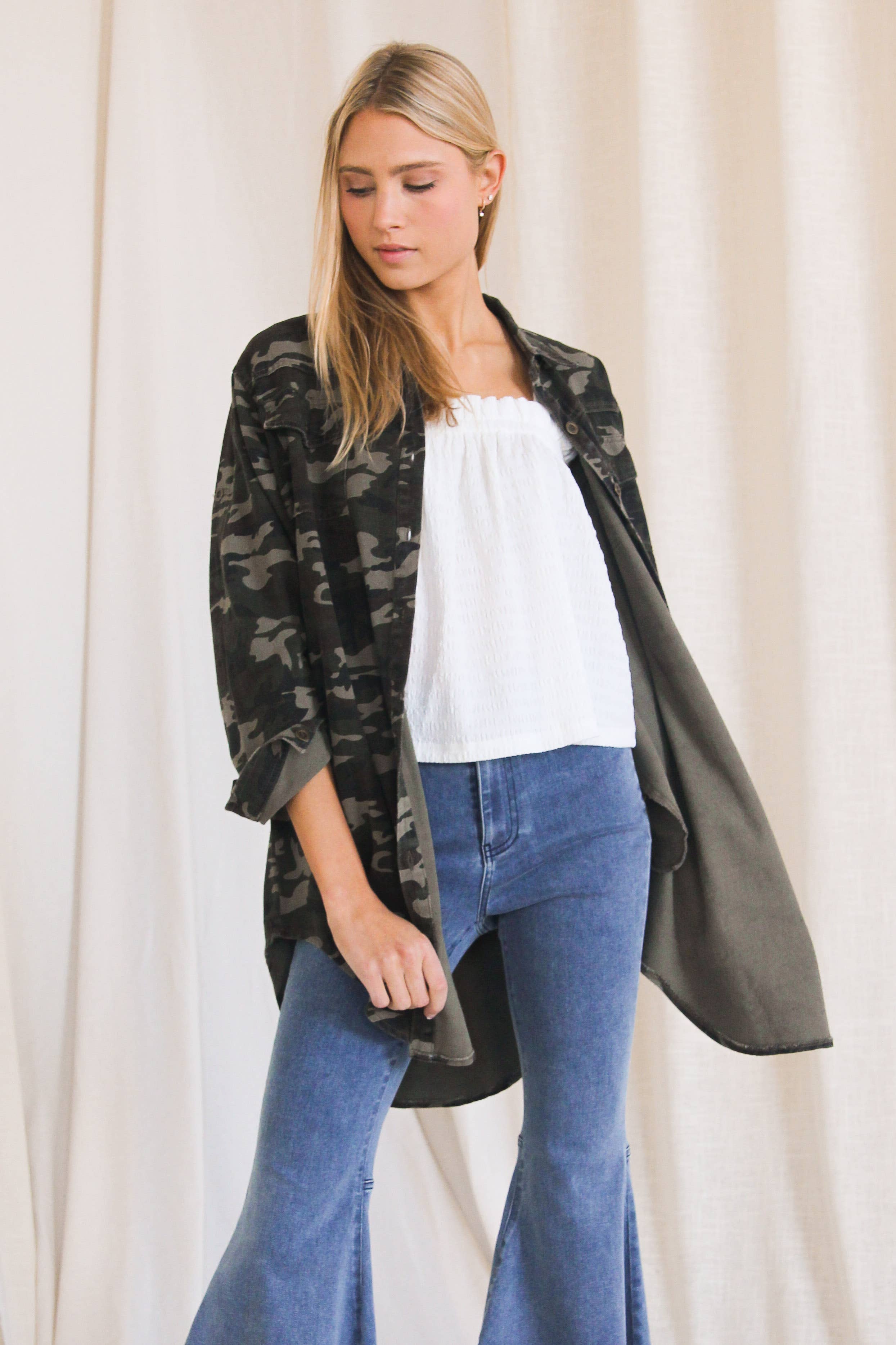 Chemise en jean imprimé camouflage