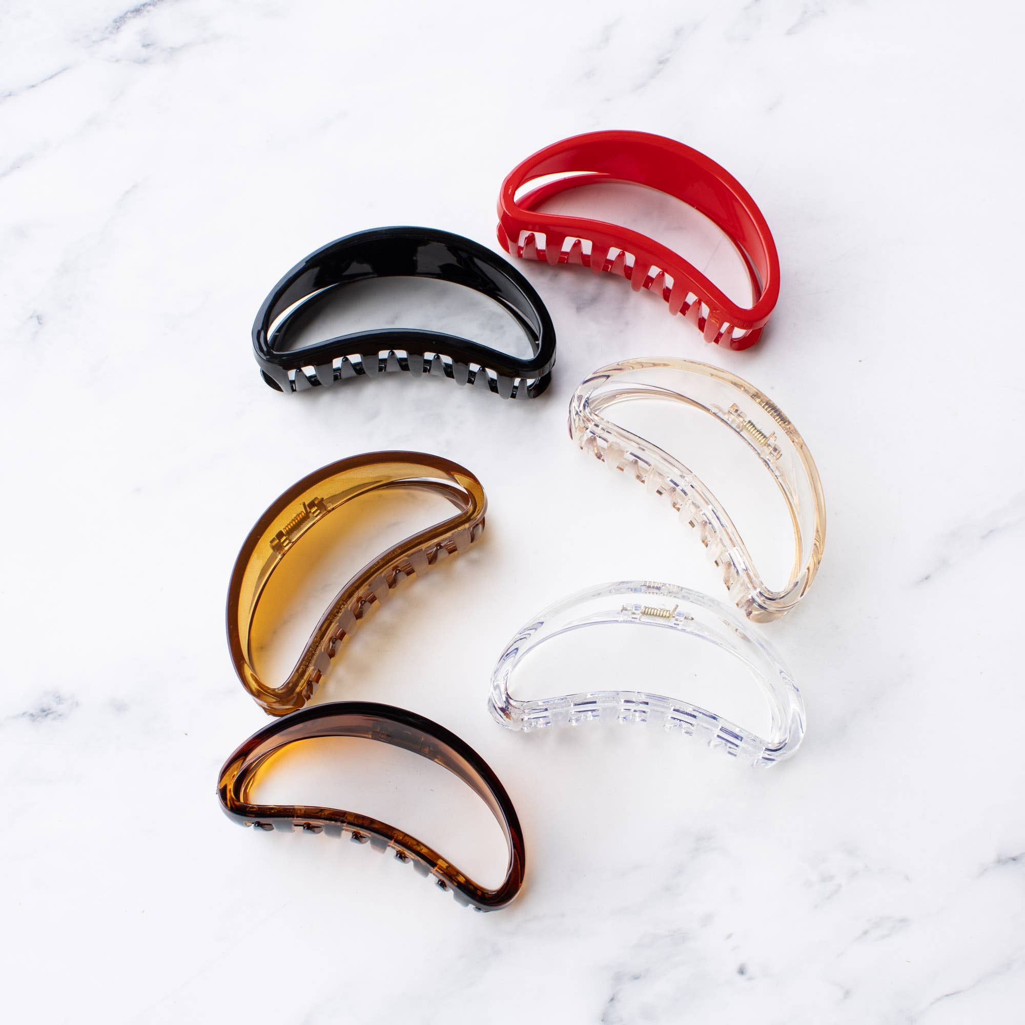 * Si durable et élégante, cette jolie pince à cheveux est de forme ovale et de couleur marbrée avec un élégant fermoir en or 18 carats pour garder vos cheveux en sécurité tout au long de la journée. * Attachez-la vers le haut et l'arrière avec ce fermoir à pince à cheveux circulaire qui peut être une pince à cheveux moyenne parfaite pour les cheveux fins et épais. * Taille : 2 1/8 « de large X 2 1/8" de haut (y compris la partie clip) * Cheveux sans dommage : offrant une prise sûre et antidérapante avec un peigne sécurisé, il maintiendra vos cheveux en place sans les endommager ni les tirer. * Parfait pour tous les types de cheveux, épais, fins, bouclés ou raides. * Fabriqué avec de l'acétate cellulose provenant de dérivés végétaux et des accessoires pour cheveux de haute qualité Gold Grip 18K * Fabriqué à la main avec de l'acétate de cellulose issu de dérivés végétaux, le matériau respectueux de l'environnement est également respectueux de l'environnement. * Cette pince à griffes est fabriquée en écaille de tortue marbrée qui a été fabriquée à la main, façonnée et polie au Shop by Alix's Studio situé à Séoul, en Corée du Sud.