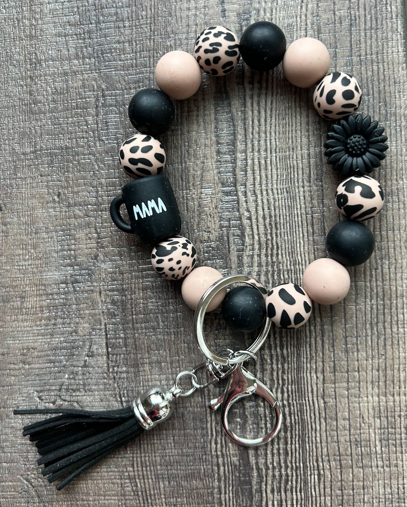 Porte-clés en silicone et perles en bois à empreinte de patte en vente B2B