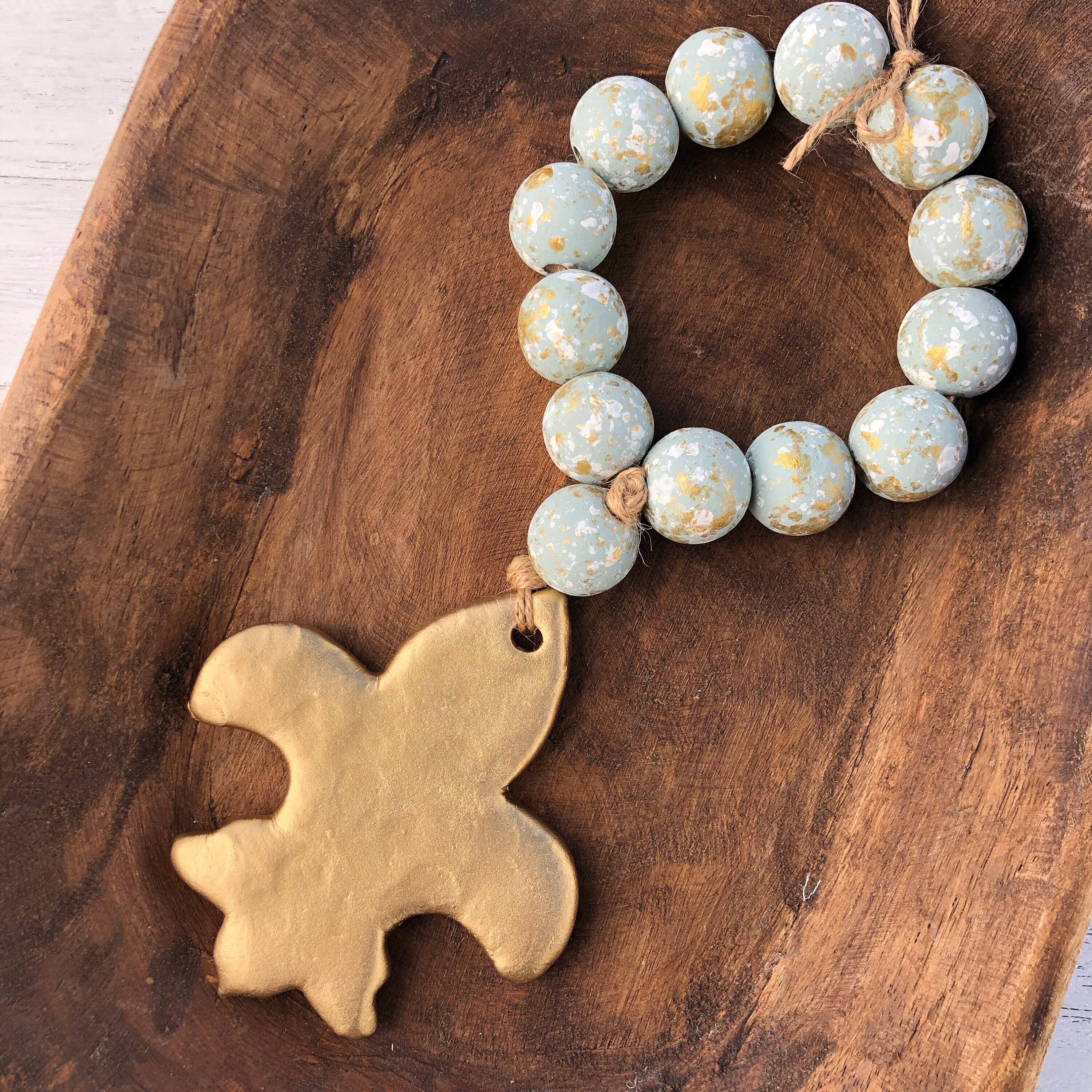 Les perles de bénédiction sont une façon unique de vous rappeler l'amour de Dieu et de faire un cadeau attentionné pour toutes les occasions ! Suspendues à des poignées de porte, drapées dans un bol, un panier ou un cadre photo, ou simplement placées sur une table basse, une table d'appoint ou une étagère, les perles de bénédiction ajoutent une touche décorative spéciale à n'importe quel espace de votre maison. Les ensembles de guirlandes de perles Blessing sont fabriqués à partir de perles de bois de 1 pouce peintes à la main dans la couleur de fond de votre choix et avec la finition mouchetée emblématique de Place of Grace Design et enfilées avec de la ficelle de jute. Chaque taille-douce de lapin avec 3 lièvres est unique en son genre et fabriquée à la main en argile et émaillée en or.