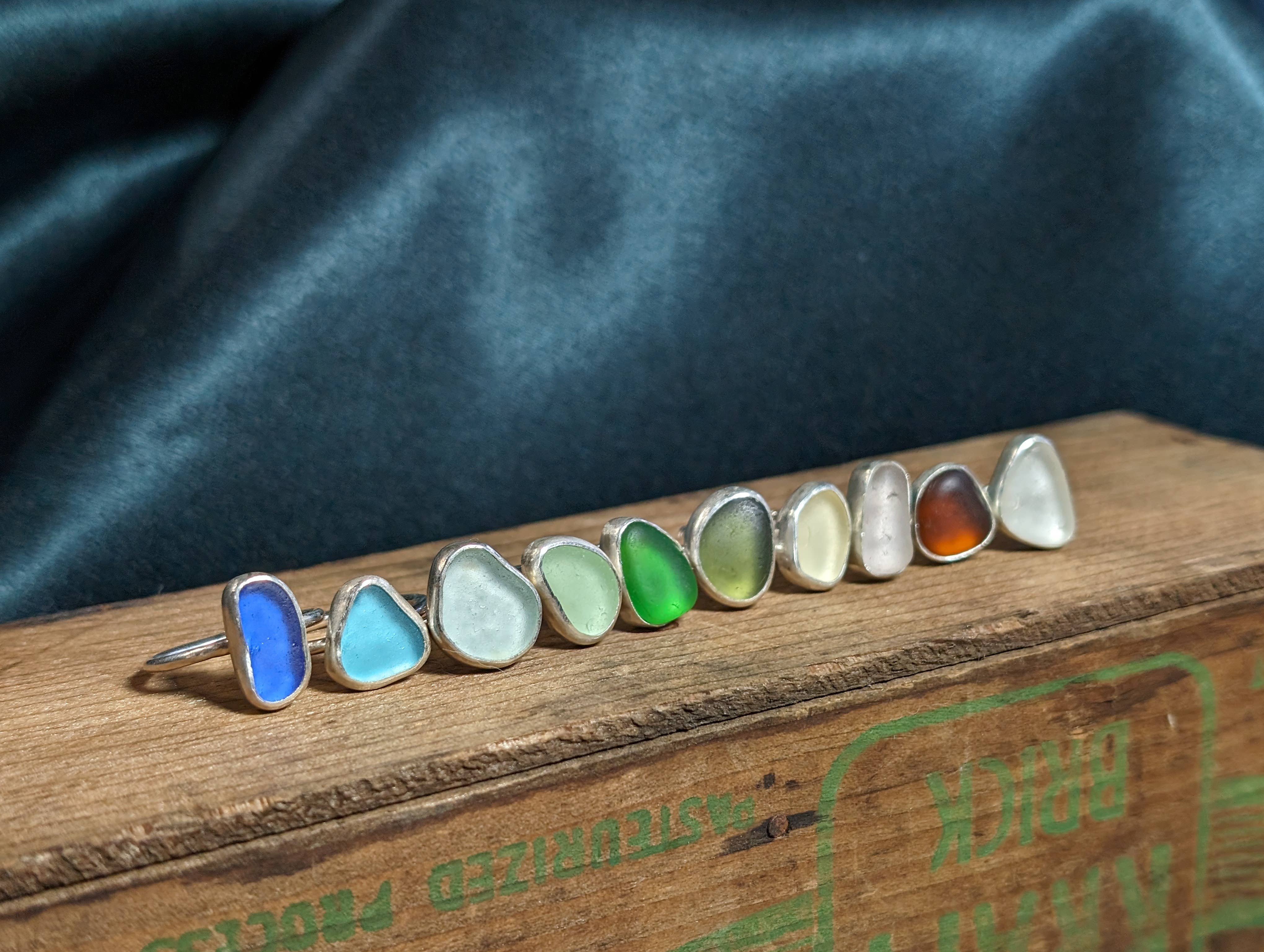 Bague manchette Perelle en verre de mer et perle. Elles changent de couleur sous presque toutes les nuances de lumière et les huiles naturelles du corps de chaque personne créent un motif unique pour une pièce unique en son genre. Une bague avec deux sertissages sur un anneau en argent sterling légèrement ajustable. Veuillez noter que les anneaux manchettes nécessitent plus de mouvement pour être portés confortablement, donc cette bague sera fabriquée pour s'adapter à la taille que vous sélectionnez. Par exemple, si vous sélectionnez une taille 7, je crée une taille 7 qui conviendra le mieux à une taille 6. Si vous avez des questions, je suis là ! Envoyez-moi simplement un message et je vous aiderai à choisir la bonne taille. Couleur : verre de mer bleu aqua.