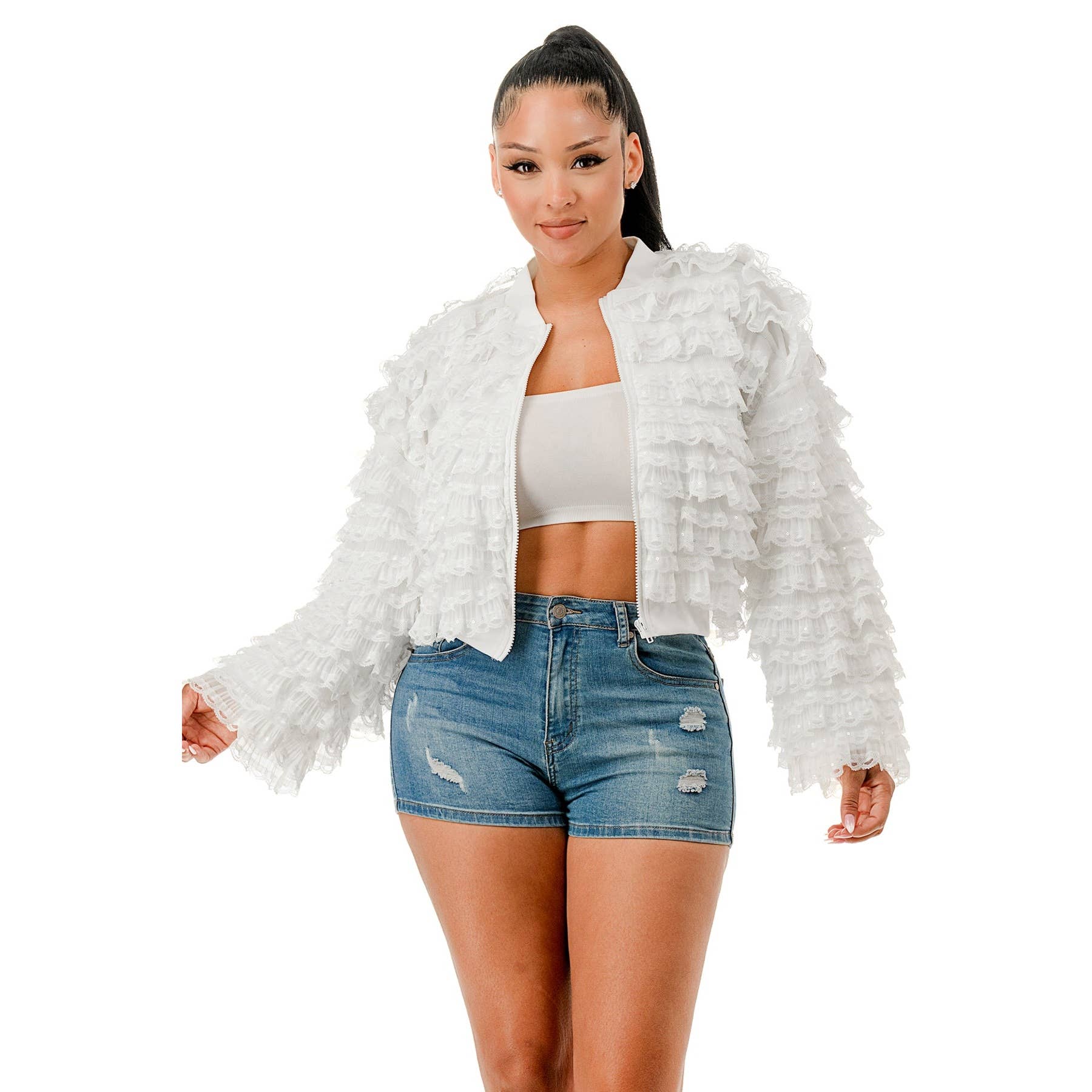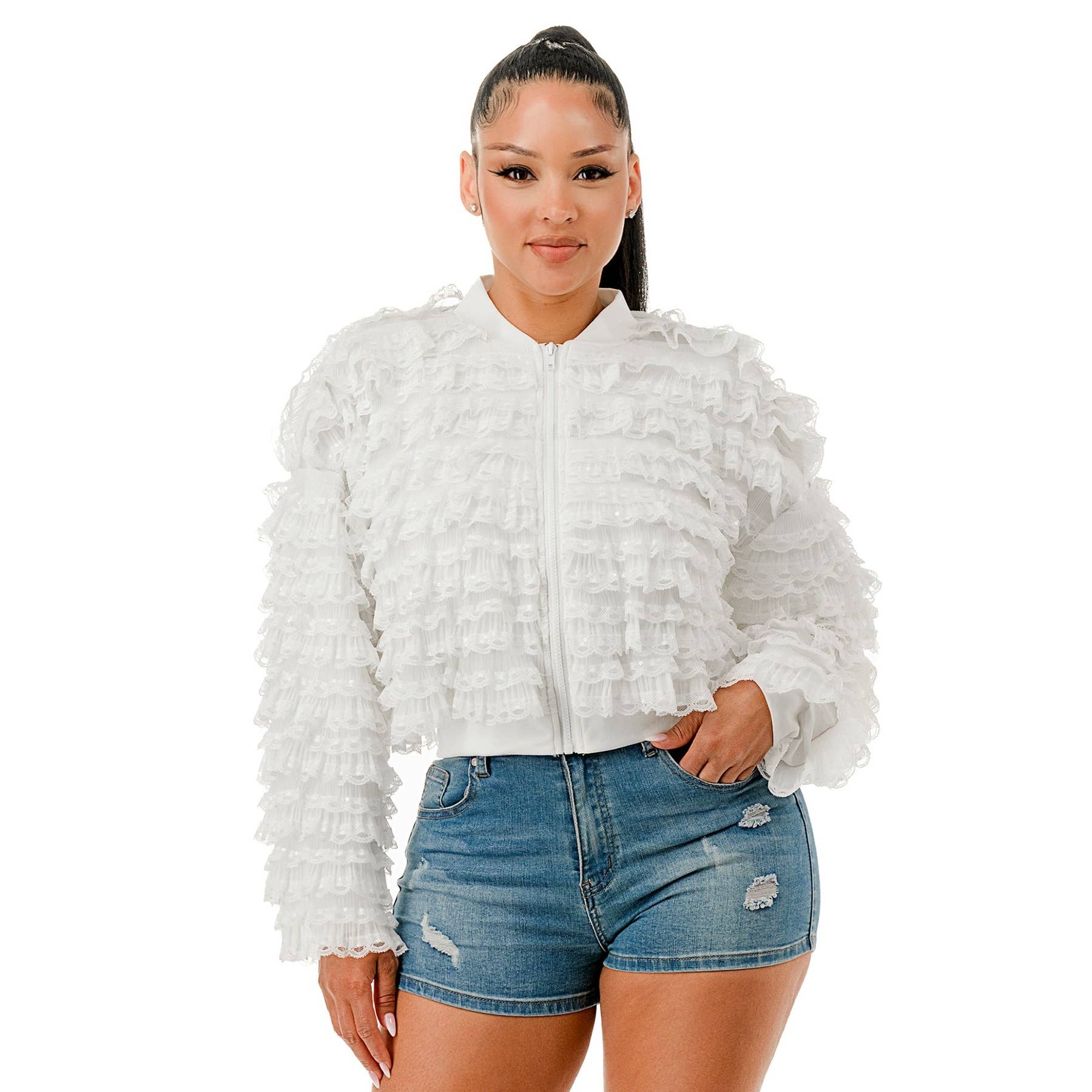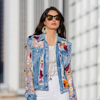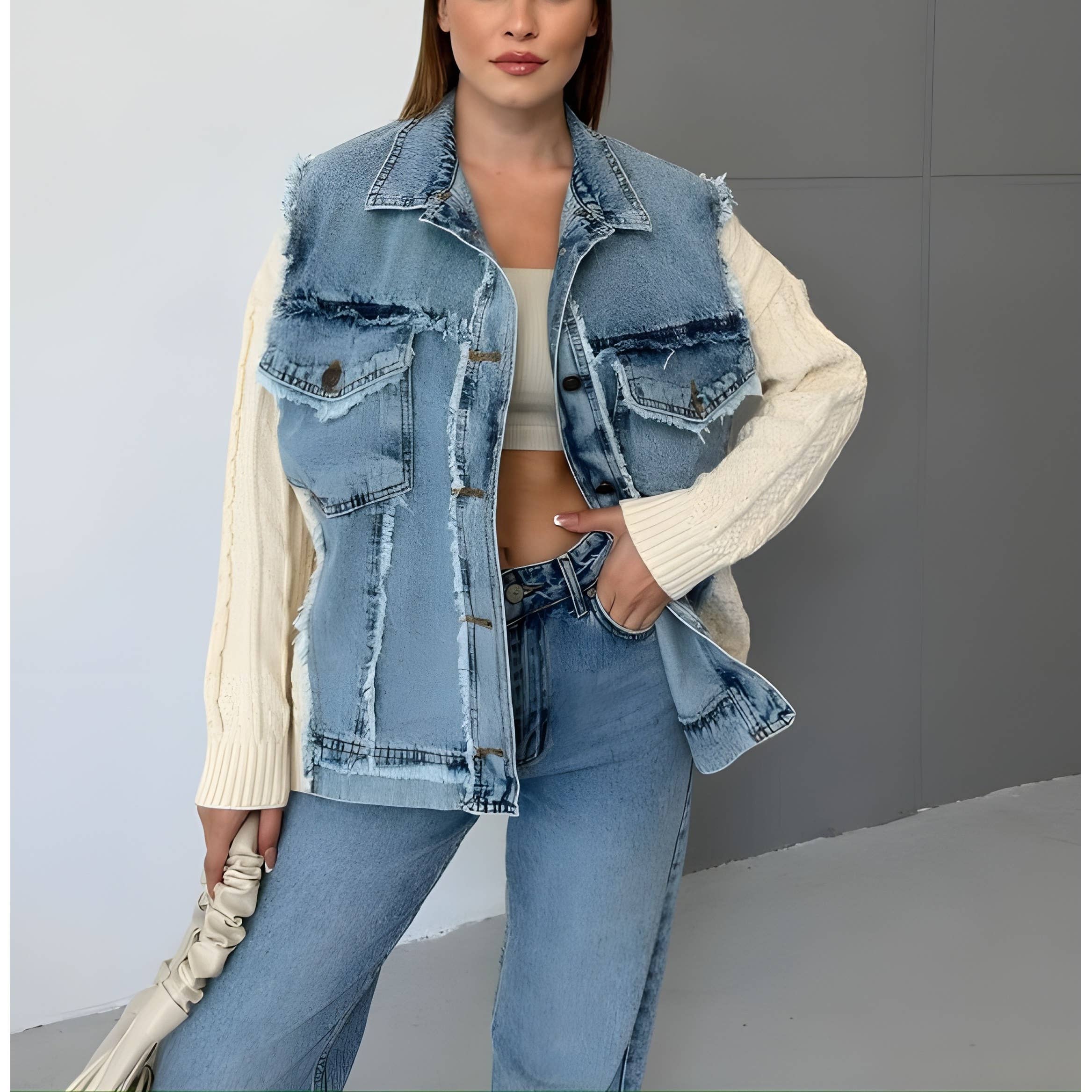 Veste en jean ornée de pierres et de paillettes en vente B2B