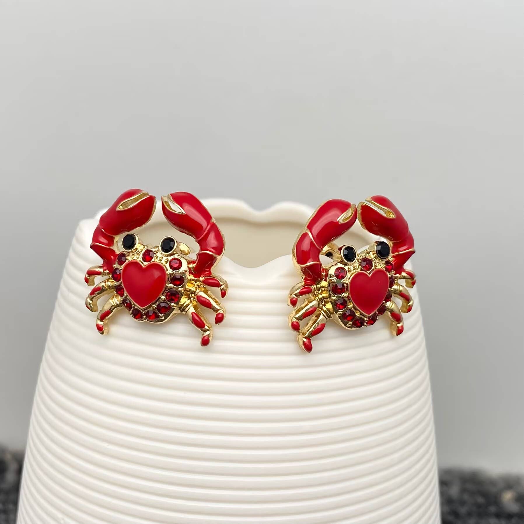 Delicacies Jewelry Boucles d'oreilles crabe en argent sterling - Chaque achat aide à combattre la faim ! Cadeau gourmand, bijoux alimentaires en vente B2B