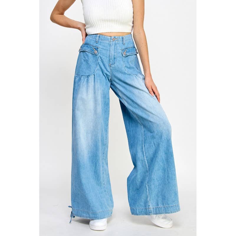 Pantalon de survêtement en denim à jambes larges avec poche en vente B2B