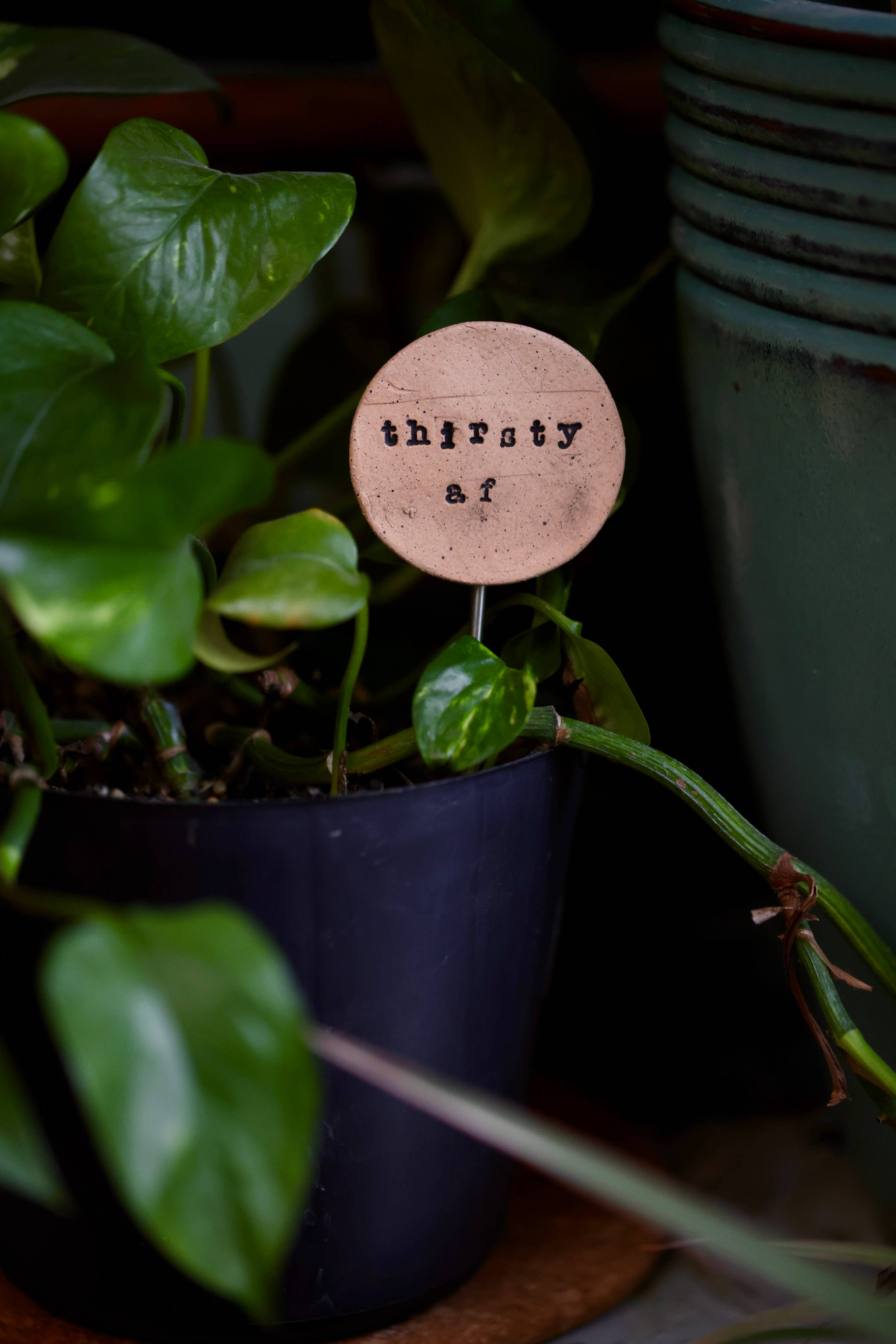 CLIQUEZ ICI POUR PLUS D'INFORMATIONS Ce sont des accessoires amusants pour vos plantes d'intérieur et associez des plaques en céramique uniques à un piquet en acier inoxydable. Parfaits pour une utilisation en intérieur ou en extérieur (mais pas par temps glacial), ce sont d'excellents ornements pour toutes les plantes en pot que vous avez ajoutées à votre couvain... Elles sont certainement nées de nos propres tendances, obsédées par les plantes, et nous en avons ajouté certaines à nos propres plantes d'intérieur (photo sur les photos). Piquet en acier inoxydable, 6 po de long Argile non émaillée ; les lettres tachées ne se décolorent pas et ne se décolorent pas