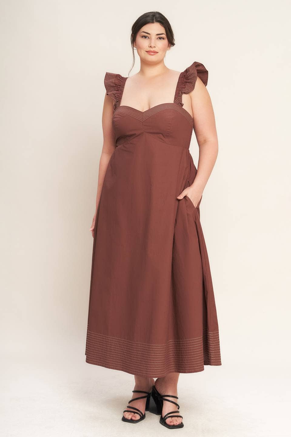 ROBE LONGUE À LIGNES EN APPLIQUE 3D GRANDE TAILLE EN VENTE B2B