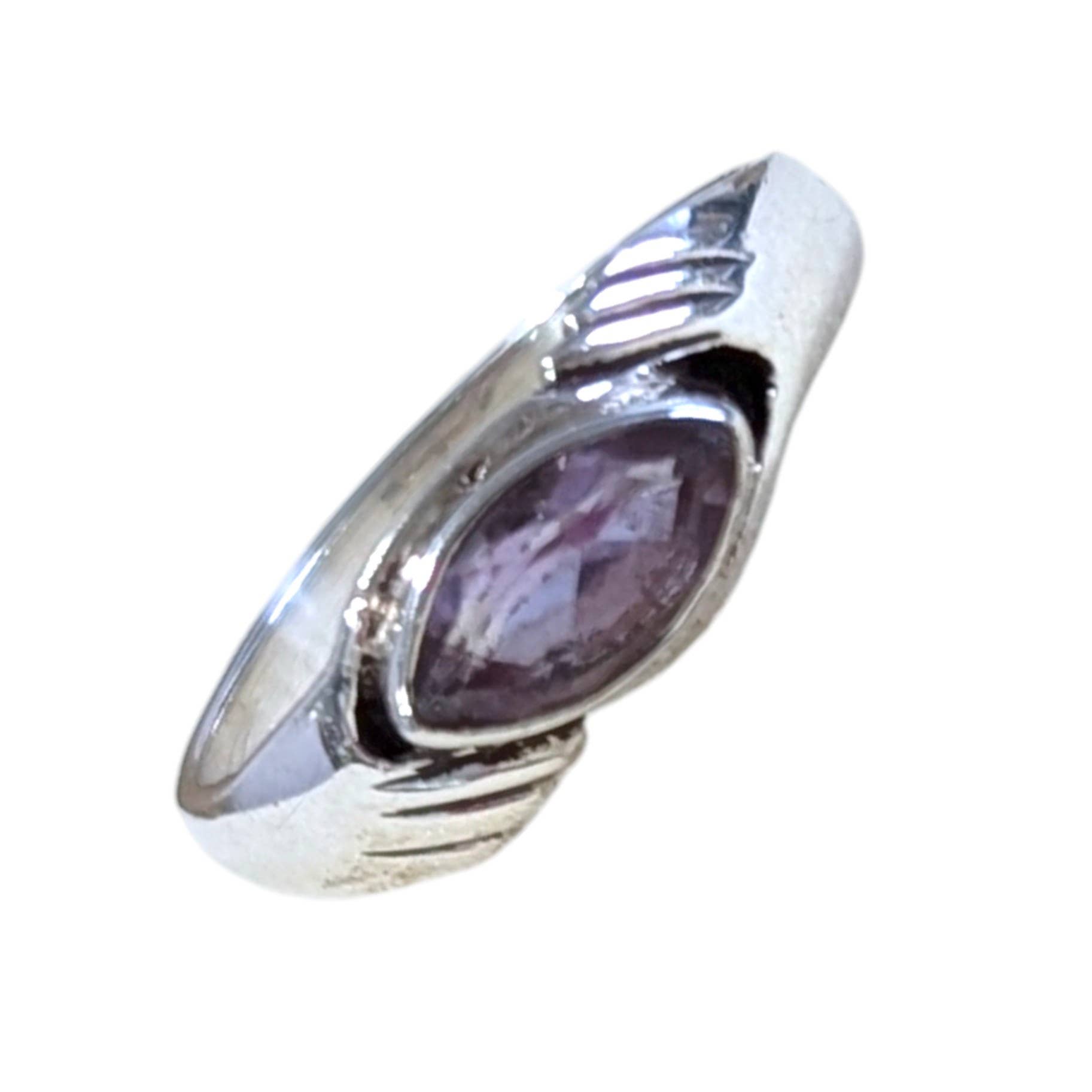 Bague en argent sterling avec améthyste. Pierre d'améthyste de forme ovale sertie en argent sterling .925.