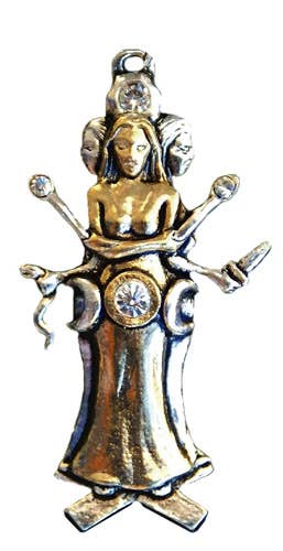 WICCA - Collection Wiccan - PENTACLE DE LA DÉESSE « La Déesse est vivante et la magie est en marche. » La Déesse représente le caractère féminin de l’univers. Elle tisse sa danse infinie de création à partir des fils des éléments sacrés Terre, Eau, Feu, Air et Esprit. Ces cinq éléments sacrés sont symbolisés par l’étoile à cinq branches du Pentacle. La Déesse est faite de ces éléments et les utilise pour créer le reste du cosmos. Les mouvements de sa présence mélangent ces éléments pour former les innombrables formes de l’univers. Ces cinq éléments sont comme cinq vents qui se rencontrent en son ventre, son cœur et son esprit. Elle les mélange, créant le cercle gracieux de la lune autour d’elle, la turbulence des vagues sur les rochers et chaque mouvement dans l’existence. Les pendentifs sont présentés sur des cartes Legend avec un cordon noir de 84 cm. Étains fins sans plomb. Emballés sur des cartes en papier recyclé.