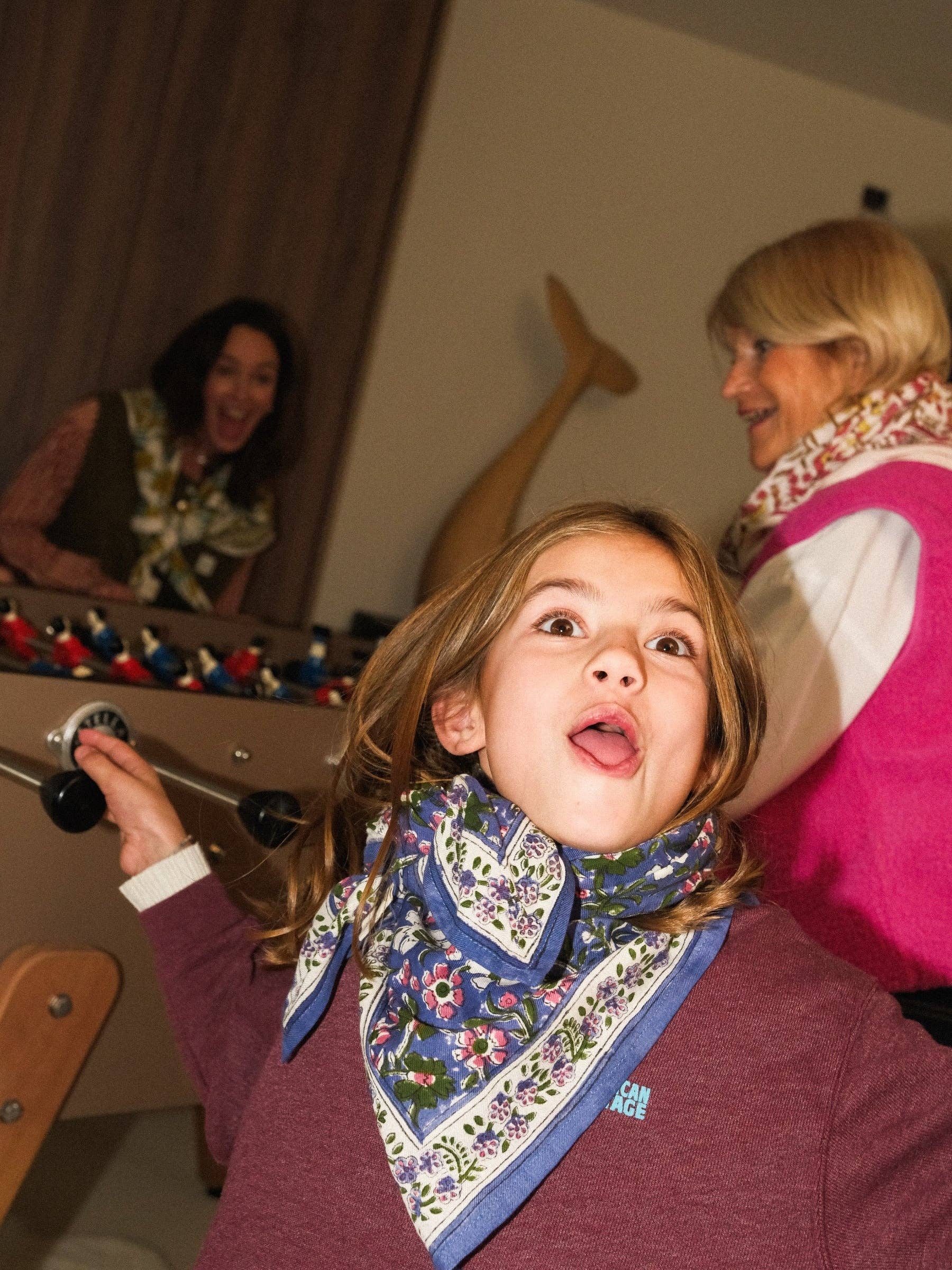 L’accessoire intemporel à adopter ♡ Nos foulards adultes (100x100 cm) sont pensés pour sublimer toutes vos tenues, été comme hiver. Léger, élégant et pratique, il se porte aussi bien autour du cou, en ceinture ou même dans les cheveux. Imprimés à la main à Jaipur avec la technique traditionnelle du block print, chaque foulard se distingue par ses nuances uniques obtenues grâce à des pigments naturels. De petites irrégularités peuvent apparaître, signe de leur fabrication artisanale et de leur authenticité. Détails : * Dimensions : 100 x 100 cm * Finitions délicates avec surpiqûres ton sur ton * Entretien : lavage en machine programme délicat / pas de sèche linge Un accessoire fabriqué dans un atelier familial en Inde, pensé pour durer et vous accompagner au quotidien.