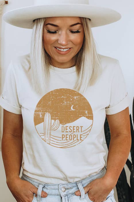 T-shirt doré métallisé à motif de soleil et de cactus Desert en vente B2B