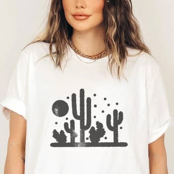 T-shirt doré métallisé à motif de soleil et de cactus Desert