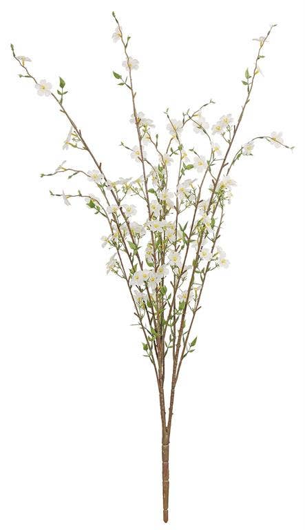 Comme présenté dans Elle Decor, notre magnifique branche artificielle de cognassier de printemps de 57" de haut est indispensable pour un style floral sans effort et raffiné. Avec ses élégantes fleurs crème et sa tige très réaliste semblable à une branche brune, cette branche fleurie artificielle imite parfaitement la nature. Exposez plusieurs de ces fausses branches dans votre vase préféré pour créer une belle composition centrale de plantes permanentes que vous pouvez apprécier chaque jour. - 57" de haut x 22" de large - 24 fleurs, 1,25-2" de large - Tige principale, 27" de haut - 30% tissu, 30% plastique, 20% fil, 20% papier - Pétales en soie avec centres en plastique - Tiges entièrement câblées, faciles à plier ou à couper avec des coupe-fils