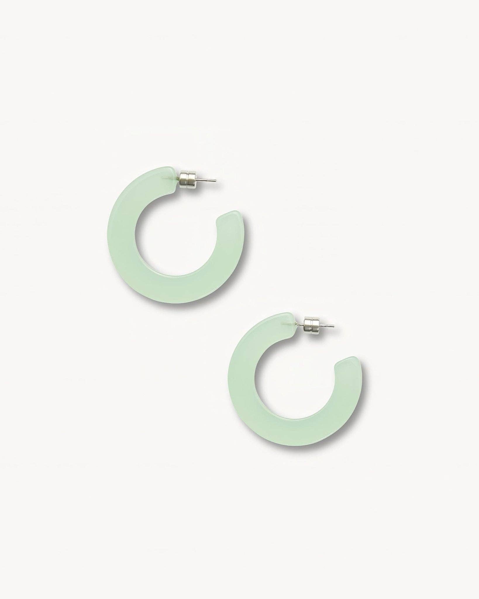 Boucles d'oreilles créoles avec perles de verre turquoise, chartreuse et aqua. Chaque boucle d'oreille pèse 0,22 oz et mesure 1,5 pouce de longueur de haut en bas.