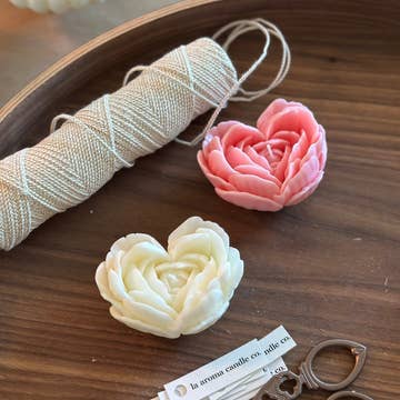 Bougie en cire de soja à la fleur de camélia dans un pot en Jesmonite : Bougie parfumée faite à la main en vente B2B
