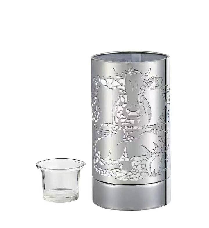 Lampe tactile 18 cm avec chauffe-cire et diffuseur d’huile - Motif animaux argenté