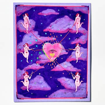 Un cœur de style fraktur, deux doux visages penchés l'un vers l'autre. 💓 Imprimé localement sur du papier recyclé, 8 » x 8 ».